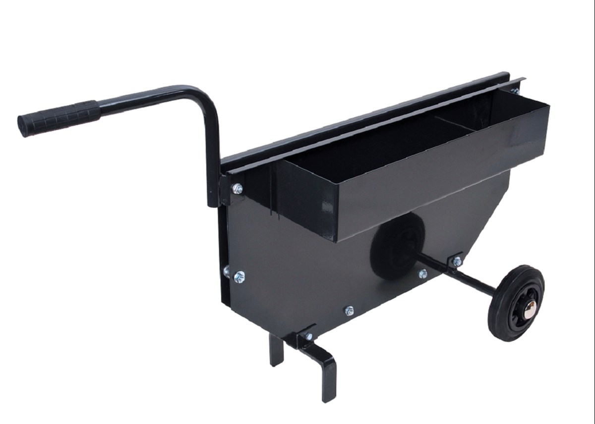 Avrullare avsedd för stålband. Praktisk låda på sidan för att enkelt kunna transportera både lås och stålbandsverktyg.