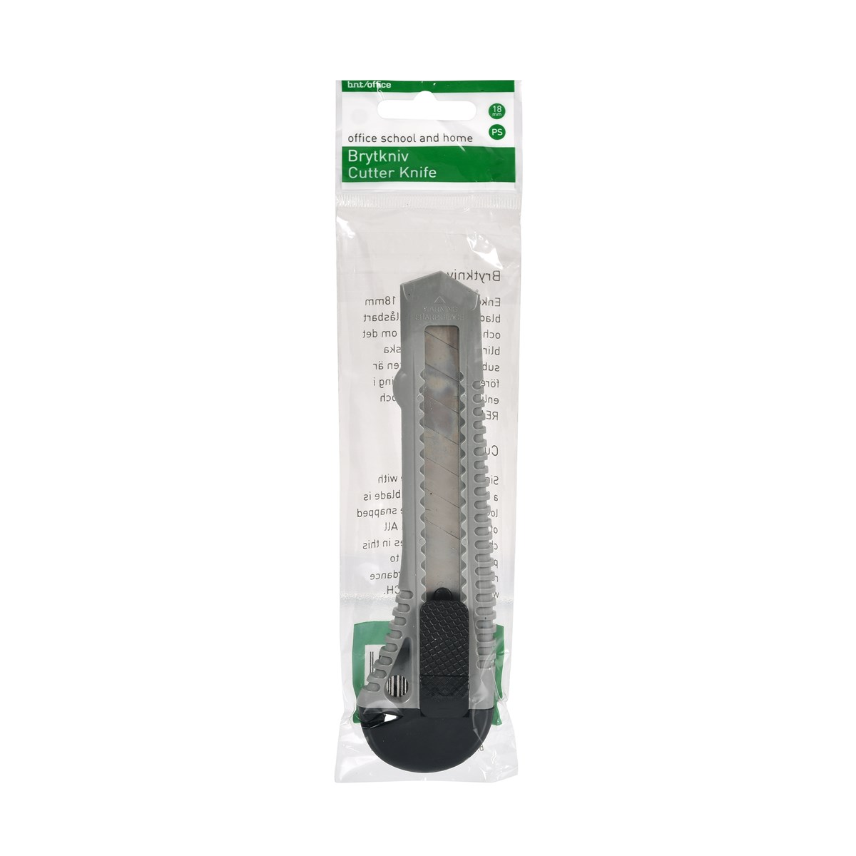Brytkniv med 18 mm blad som är perfekt på kontoret, lagret eller hemma. Den här kniven skär lätt genom många olika material. En kniv konstruerad för maximal säkerhet, med säkerhetsspärr och indragbart blad.