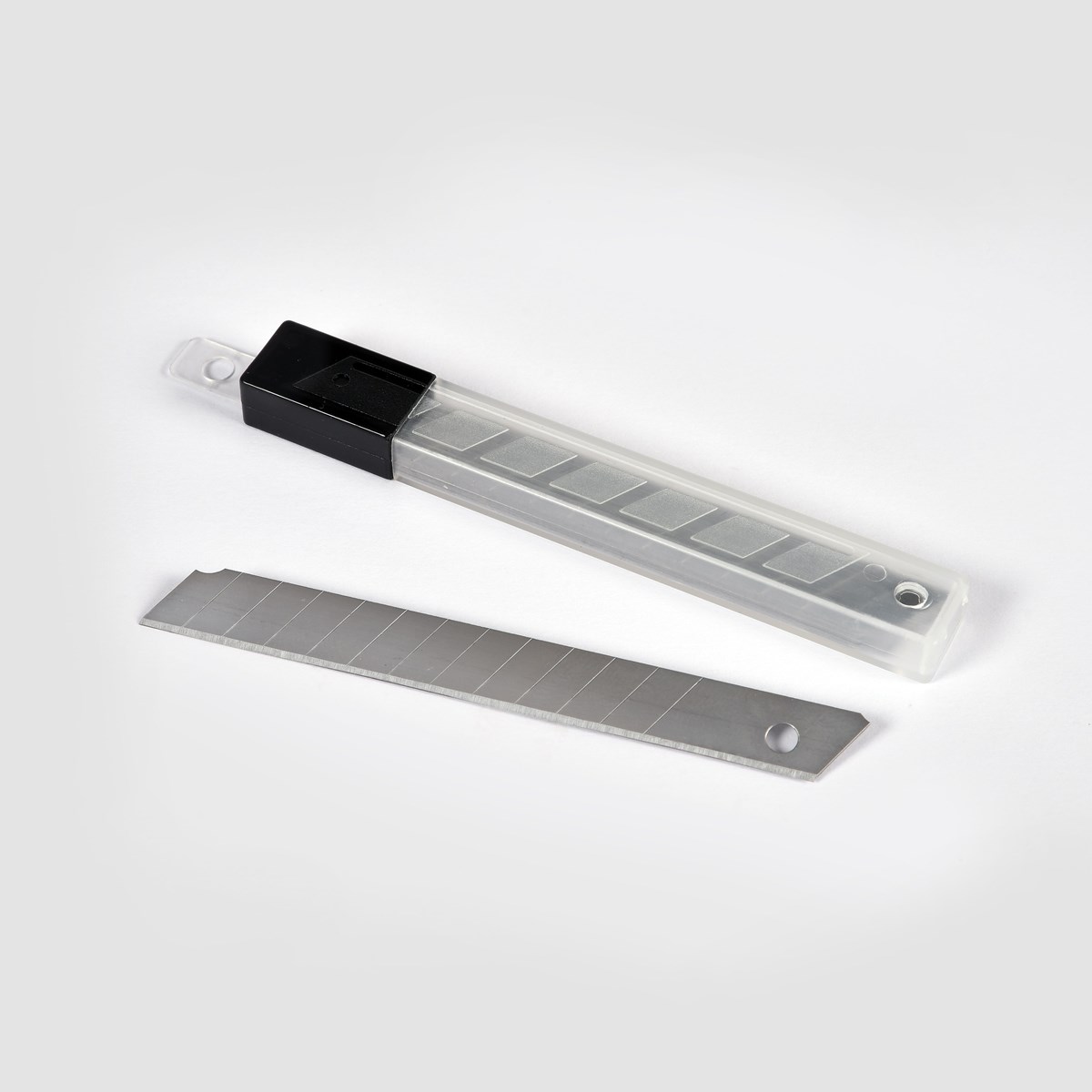 Brytblad av specialhärdat stål som passar alla 9 mm brytbladsknivar. 10 blad förpackade i säkerhetstub.