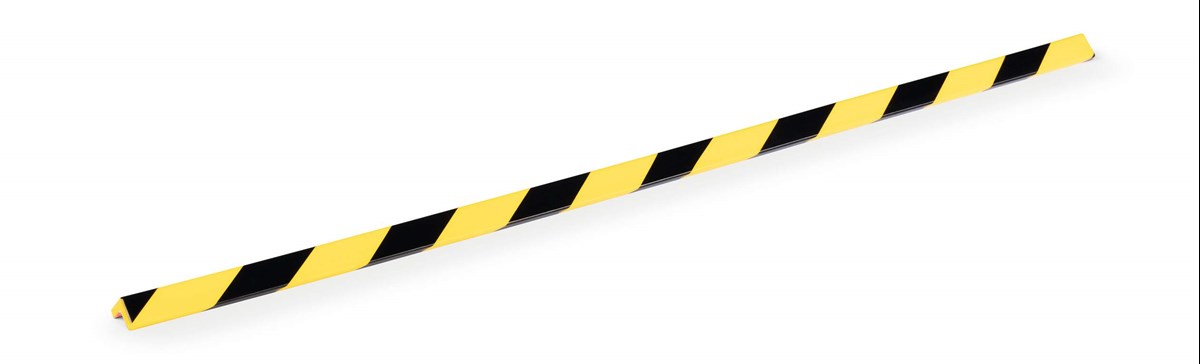 De svart/gula ränderna varnar för vassa hörnor och polyuretan skummet, som skyddsprofilen är tillverkad av, är stötdämpande. Det självhäftande hörnskyddet skärs till önskad längd med en vass kniv. stark, självhäftande klisteryta av god kvalitet som bl.a. fäster på metall, trä, kartong och kakel med bäst resultat om temperaturen är 10-30°C. Färgnyanser enligt ASR A1.3 liknande RAL 1004/9003 (signal gul/signalsvart).