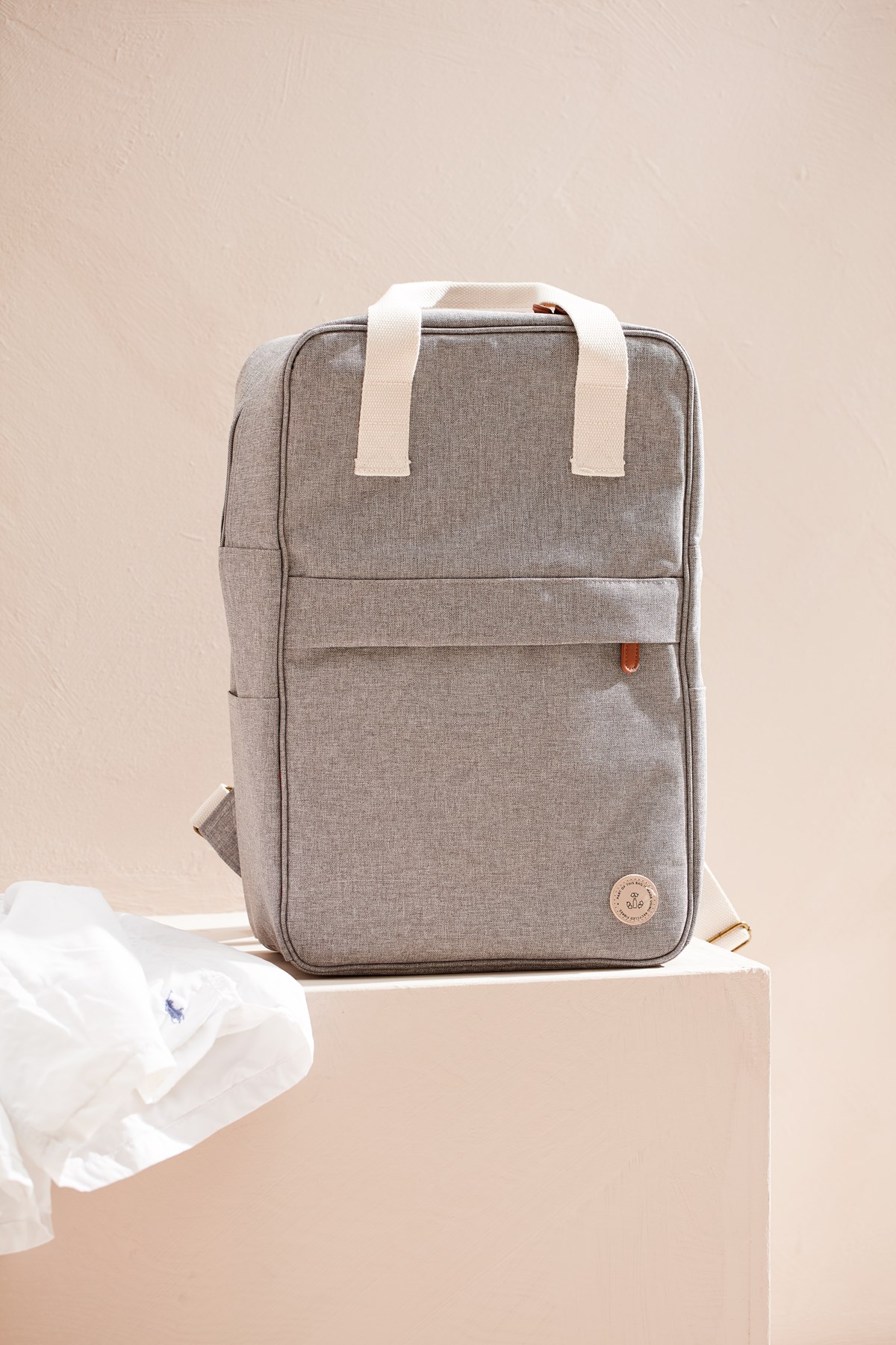 Väska tillverkad av RCS-certifierad återvunnen polyester. Lätt att torka av och de snygga detaljerna i bomull och konstläder ger väskan lite extra elegans.