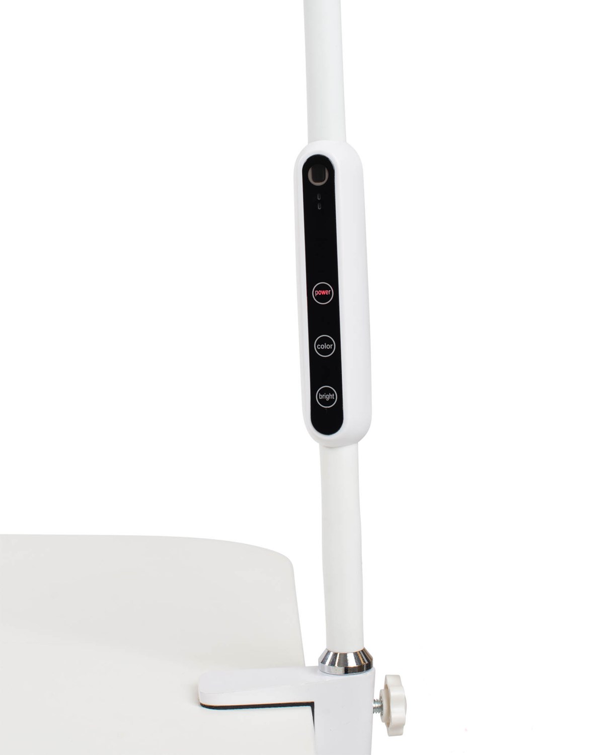 Lampans långa arm gör det enkelt att positionera ljuset där man önskar. Dimmerfunktion, färgtemperaturjustering och automatisk avstängning. Hanteras via touchkontroll eller via den medföljande fjärrkontrollen. 9 W LED. Längd: 1130 mm.