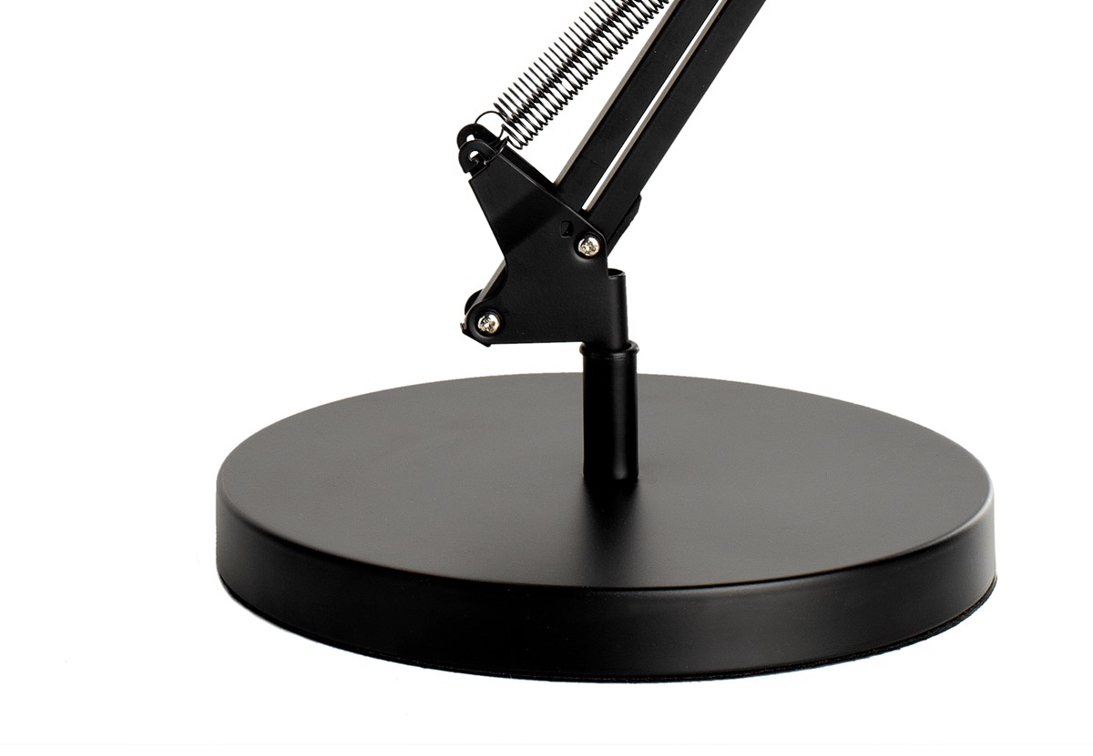 Klassisk design med fjäderbelastad arm. Den dubbelledade armen gör det möjligt att justera lampskärmen parallellt med arbetsytan. Levereras med både fot och klämma.Symmestrisk. 8 watt LED. Färgtemperatur: 3500 K. Brinntid 50.000 timmar. Armlängd: 36+36 cm, lamphuvud 23 cm. 2 års garanti.