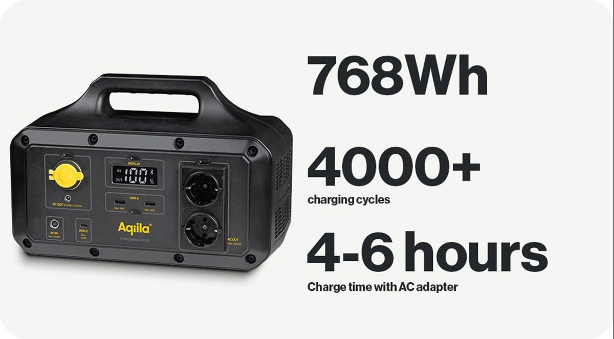 Aqiila Powerbird S1000 är en kompakt powerstation som låter dig ladda dina saker när du är på språng. Precis som en powerbank kan den ladda dina prylar och göra det möjligt att använda dina apparater när du är på språng. Perfekt för camping och bilresor eller om det blir strömavbrott. Det här är ett användbart och bekvämt resesällskap med integrerade säkerhetsfunktioner och solcellsladdning. Det kraftfulla batteriet är väl skyddat med den senaste BMS-tekniken som garanterar säker och stabil användning. Med den senaste generationens LFP-batteri är det möjligt att ladda och tömma Powerbird över 4000 gånger. Det är nästan 11 års daglig användning. Powerbird är säker, hållbar och effektiv. Powerbirds powerstationer är utrustade med den senaste MPPT-tekniken, vilket gör det enklare och effektivare att ladda Powerbird med solpaneler än någonsin tidigare.
