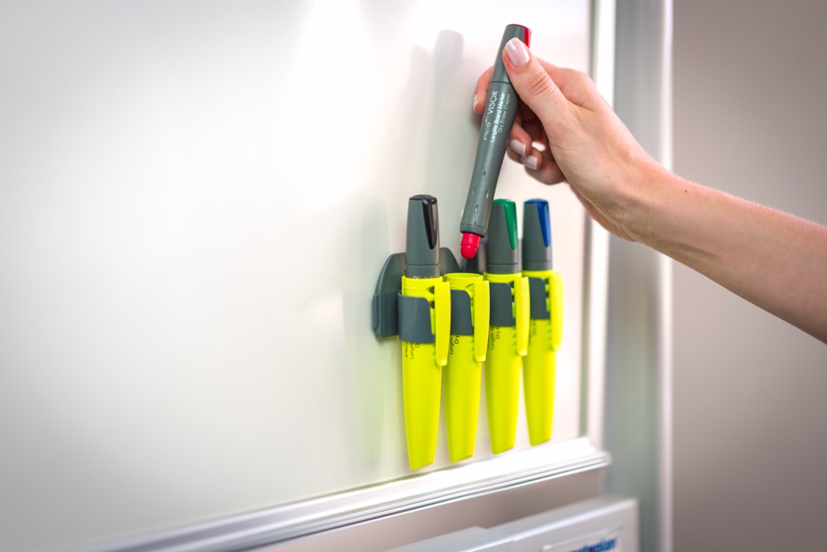 Magnetisk pennhållare Pica Visor för 2 whiteboardpennor. Kan kopplas ihop och därför utbyggbar. Kraftiga magneter för säker fäste på alla magnetiska material.