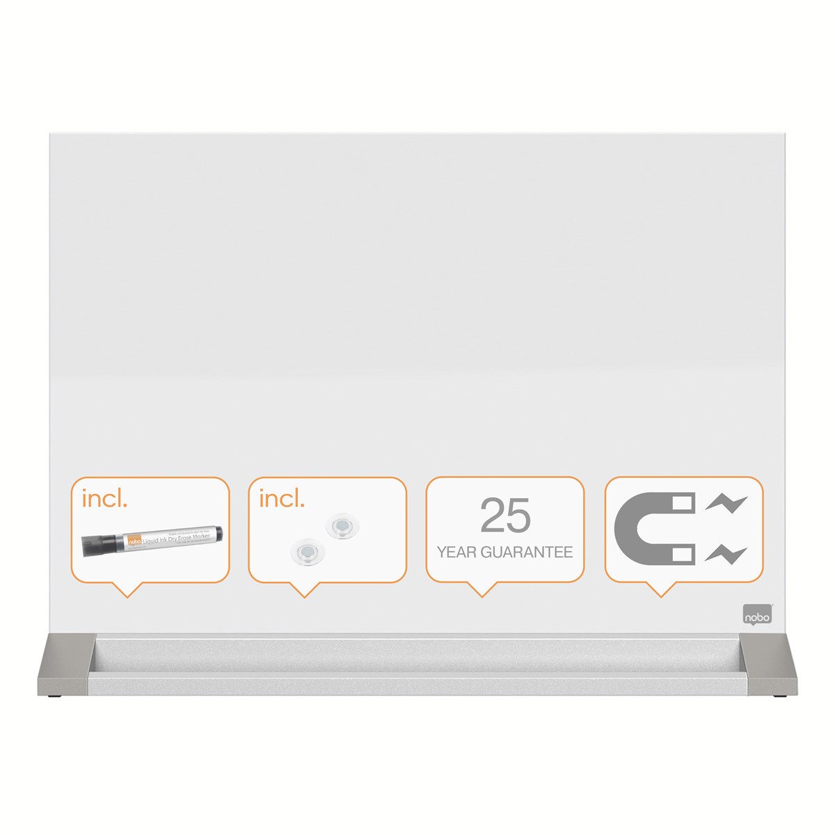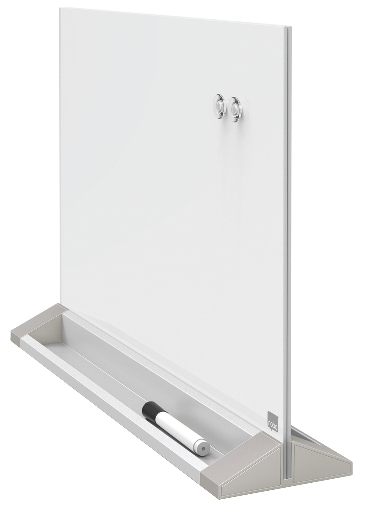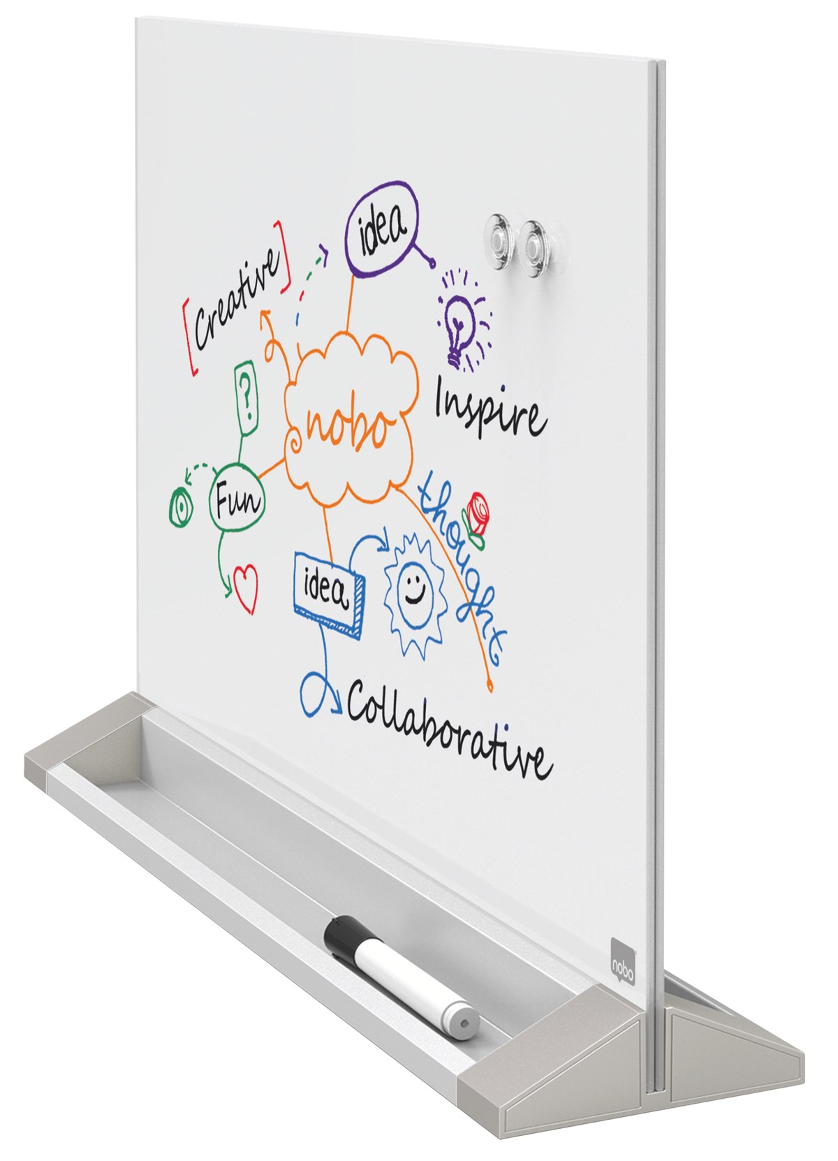Denna dubbelsidiga magnetiska whiteboard är ett användbart tillskott till alla arbetsplatser hemma eller på kontoret på grund av dess ramlösa design och förstklassiga glasyta. Den avtorkningsbara glasytan gör den till en idealisk anslagstavla och anteckningsverktyg; skriv helt enkelt, torka bort och börja om. Alternativt kan du fästa eller skriva tillfälliga anteckningar på säkerhetsglasytan eller använda whiteboardmagneter för att fästa dina memos.