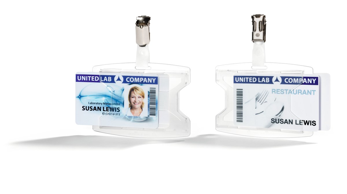 Ett bra val för en organisation som vill minska sin miljöpåverkan! Denna korthållare av 70% återvunnen polypropylen har en täckt framsida som skyddar kortet och en materialbesparande baksida. Tumgrepp gör det lätt att ta ut korten. Tåligt material som som klarar daglig användning utan att hållaren spricker. Levereras med ett vridbart hängselclips, som gör att ID-kortet alltid hänger rakt. Kan användas i liggande eller stående format. För standardkort ca 54x85 mm.