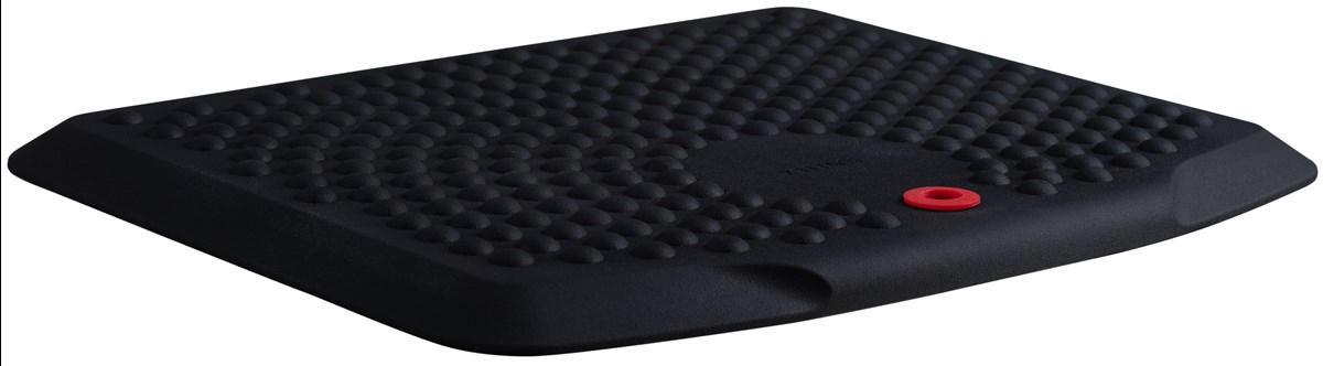 Mattan som ger dig en rejäl energikick. Tack vare de 254 aktiveringspunkterna och de 24 mm av maximal komfort står du med glädje och arbetar långa stunder. Du väljer själv om du vill stå med eller utan skor. Står du utan, får du en ökad blodcirkulation genom de perfekt utformade aktiveringspunkterna vilket ”boostar” energinivån. 100% fri från PVC och ftalater. Mått: 57 x 46 x 2,4 cm.