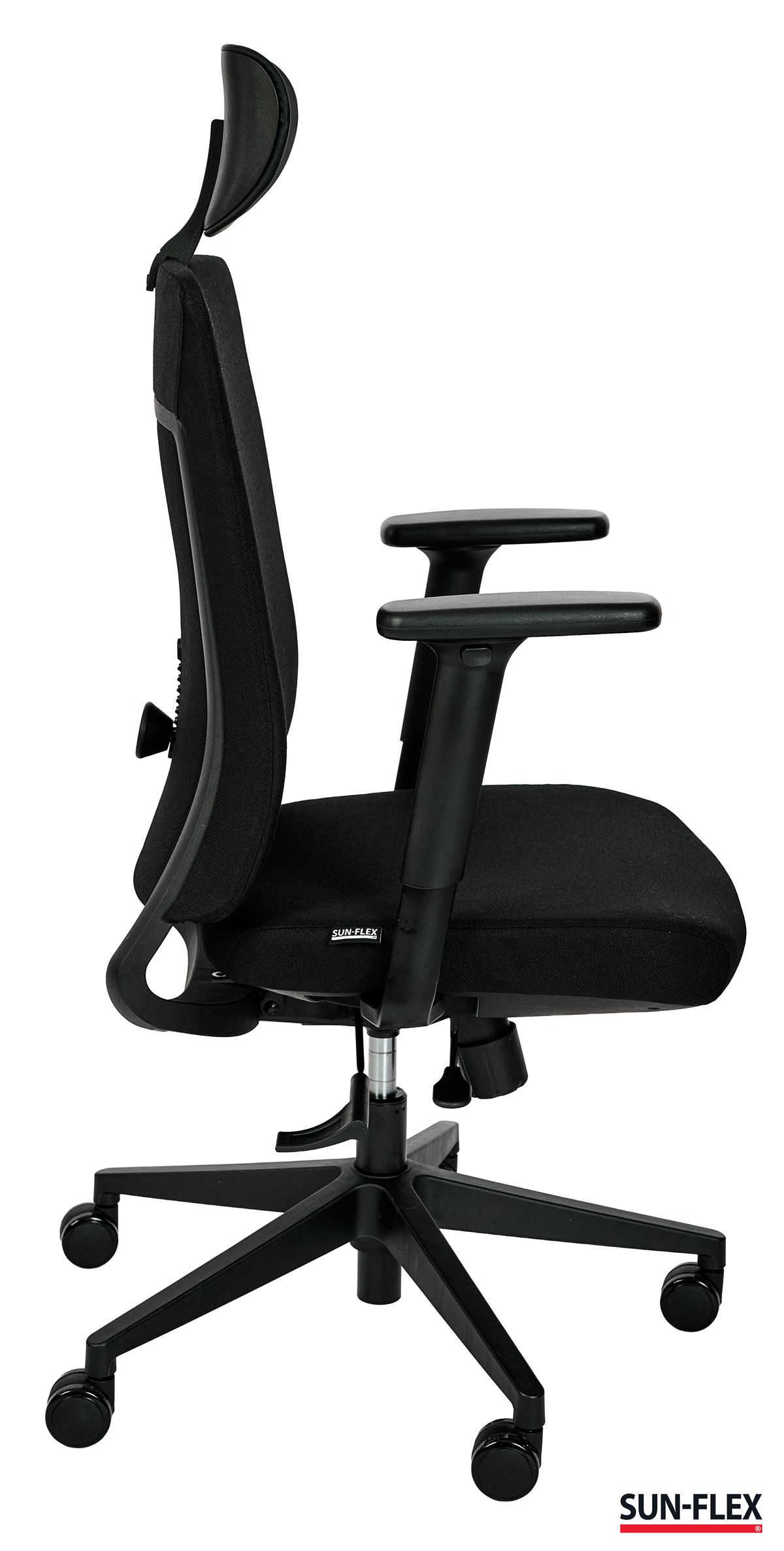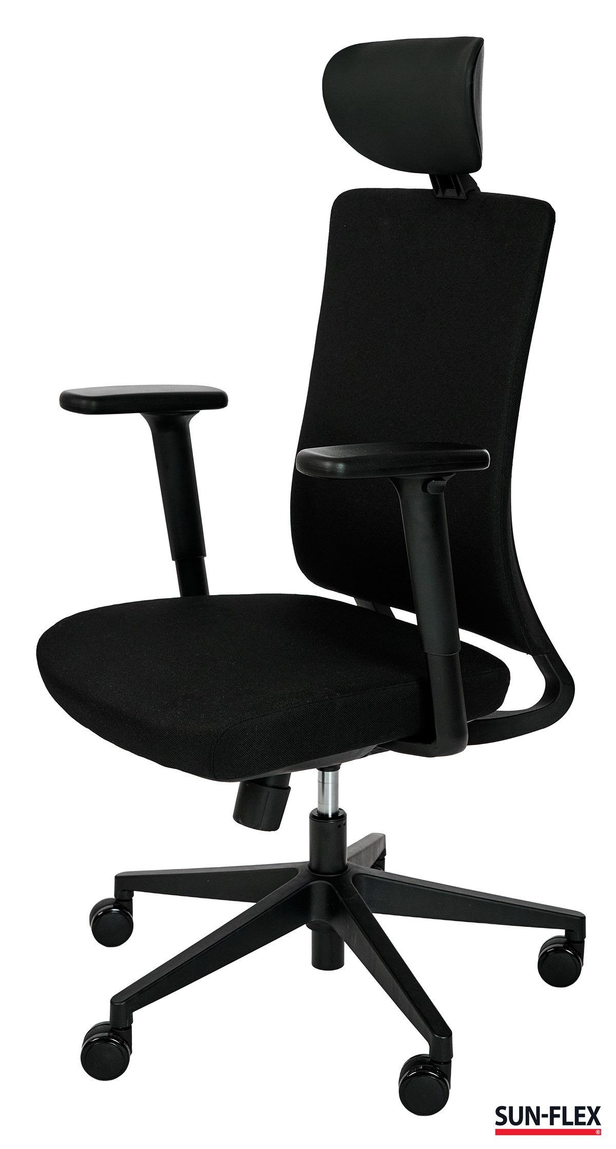 För maximal flexibilitet är SUN-FLEX® OFFICECHAIR EB utrustad med nackstöd och armstöd som kan justeras eller tas bort helt vid behov. Detta gör stolen enkel att anpassa efter olika arbetsstilar, användare och arbetsmiljöer. Den stabila konstruktionen med tystgående hjul ger en trygg och smidig användning, oavsett arbetsyta.