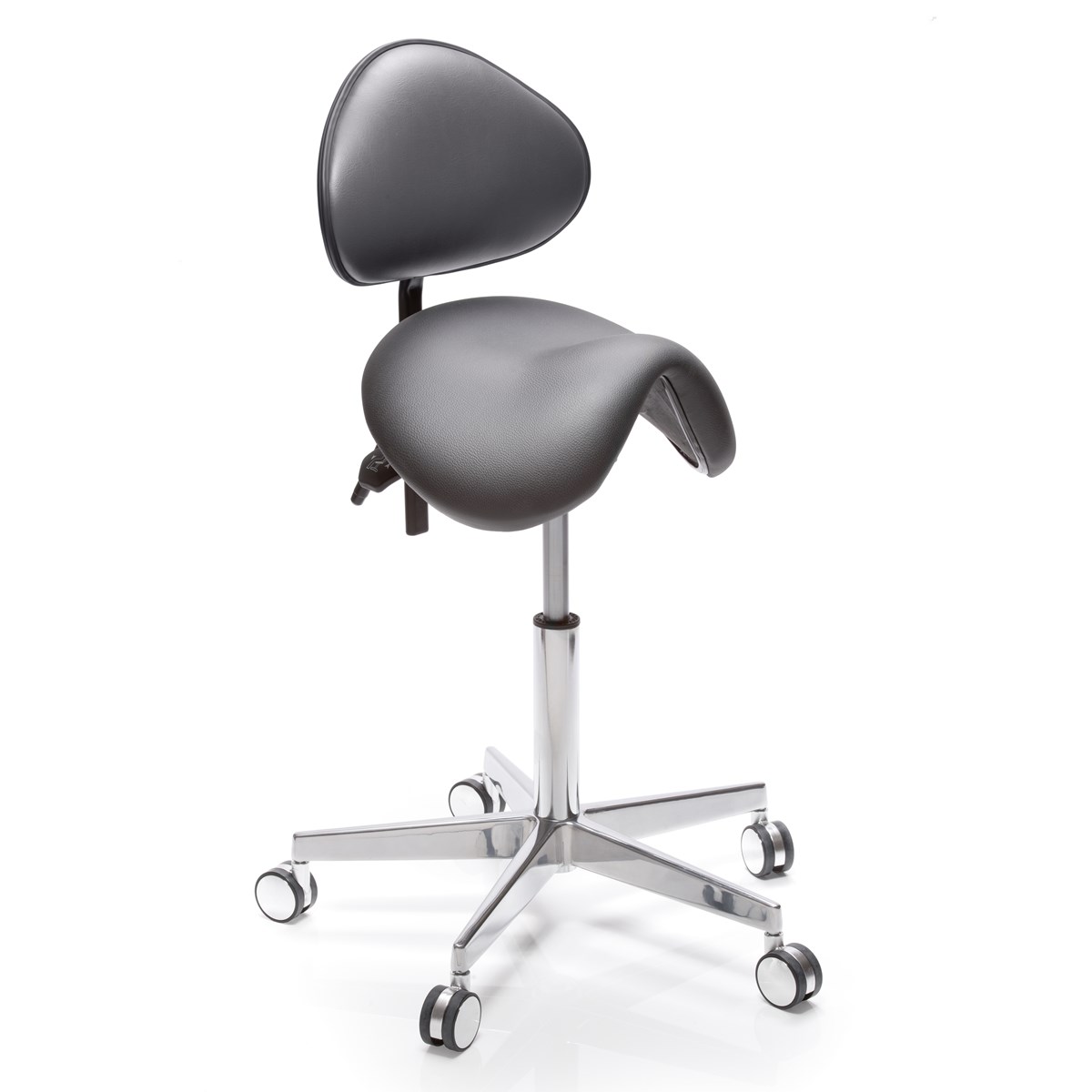 Mjuk, lite bredare sits stoppad med formgjutet kallskum. Fast tvåspaksmekanik som gör att stolen kan vinklas och låsas i olika positioner för att ge en så aktiv och varierad sittställning som möjligt. Avlastar ryggen, förbättrar din hållning, stärker kroppens muskler och minskar risken för olika typer av belastningsskador. Mått sits: 32 x 40 cm.