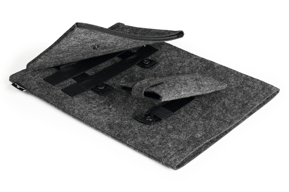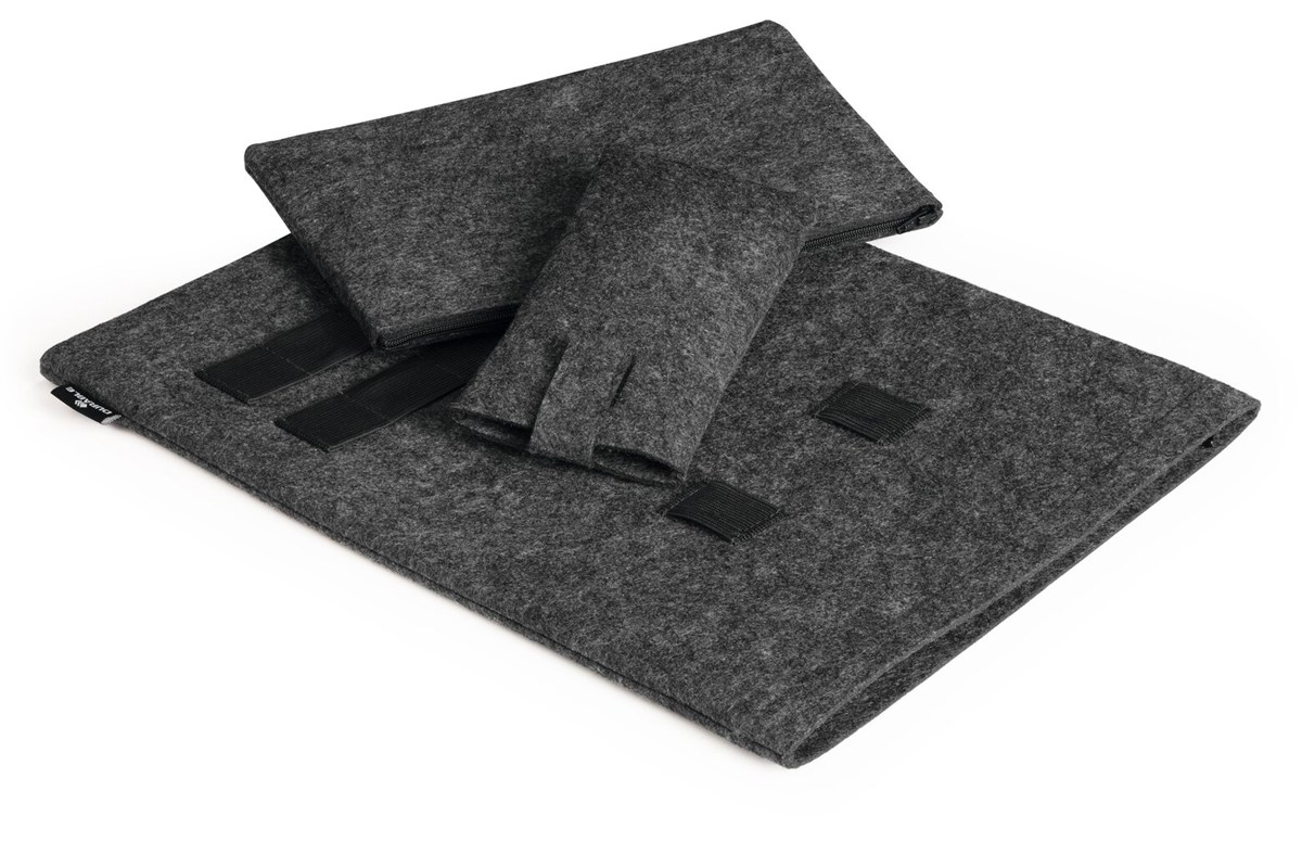 EFFECT-serien som dessa MultiBag fodral ingår i, tillverkas av ett mjukt, ljuddämpande och tåligt filtmaterial, tillverkat av 60% återvunnen PET. Produkterna i serien är 100 % återvinningsbara och förpackas hållbart med resursbesparande och plastfria material.