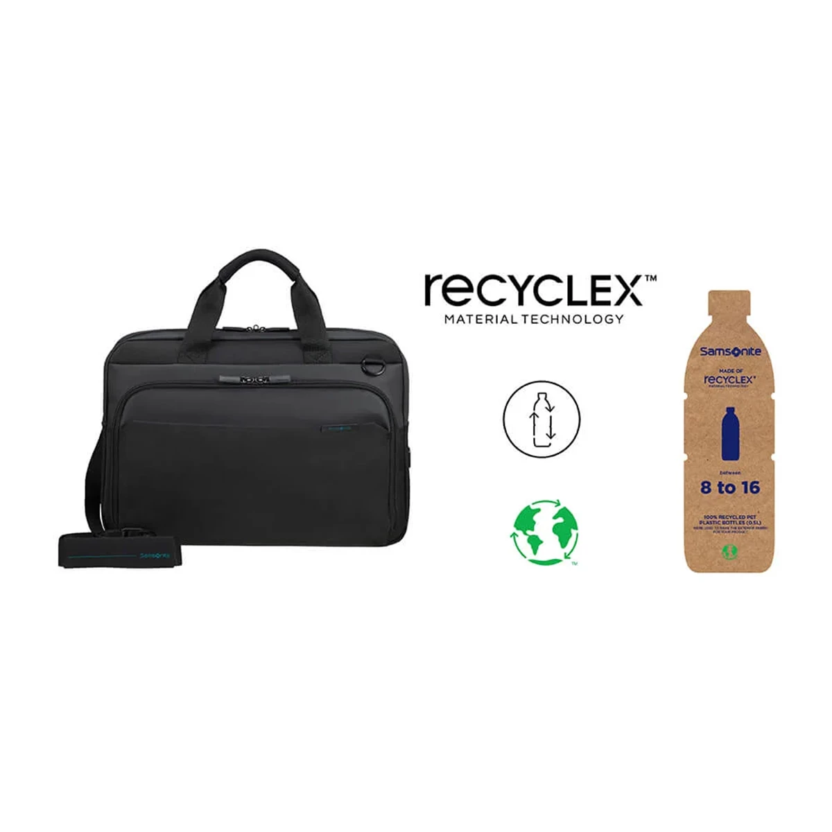 Datorväska Mysight med Easy Pass ™ Kabelhanteringssystem som gör att kablar kan passera genom olika väskfack och hålla elektroniska enheter laddade utan att ta ut dem. Smart Sleeve™ Smart Sleeve-funktionen gör det enkelt att fästa den i resväskans draghandtag. Mysight är uppgraderingen av Qbyte, en av våra populära kollektioner. Den har en högteknologisk och lätt design, med smart organisation. Mysight har ett yttre skal av återvunna PET-flaskor, men har fortfarande en modern ren design. Kombination av PU med polyester, ger den en extra elegant touch.