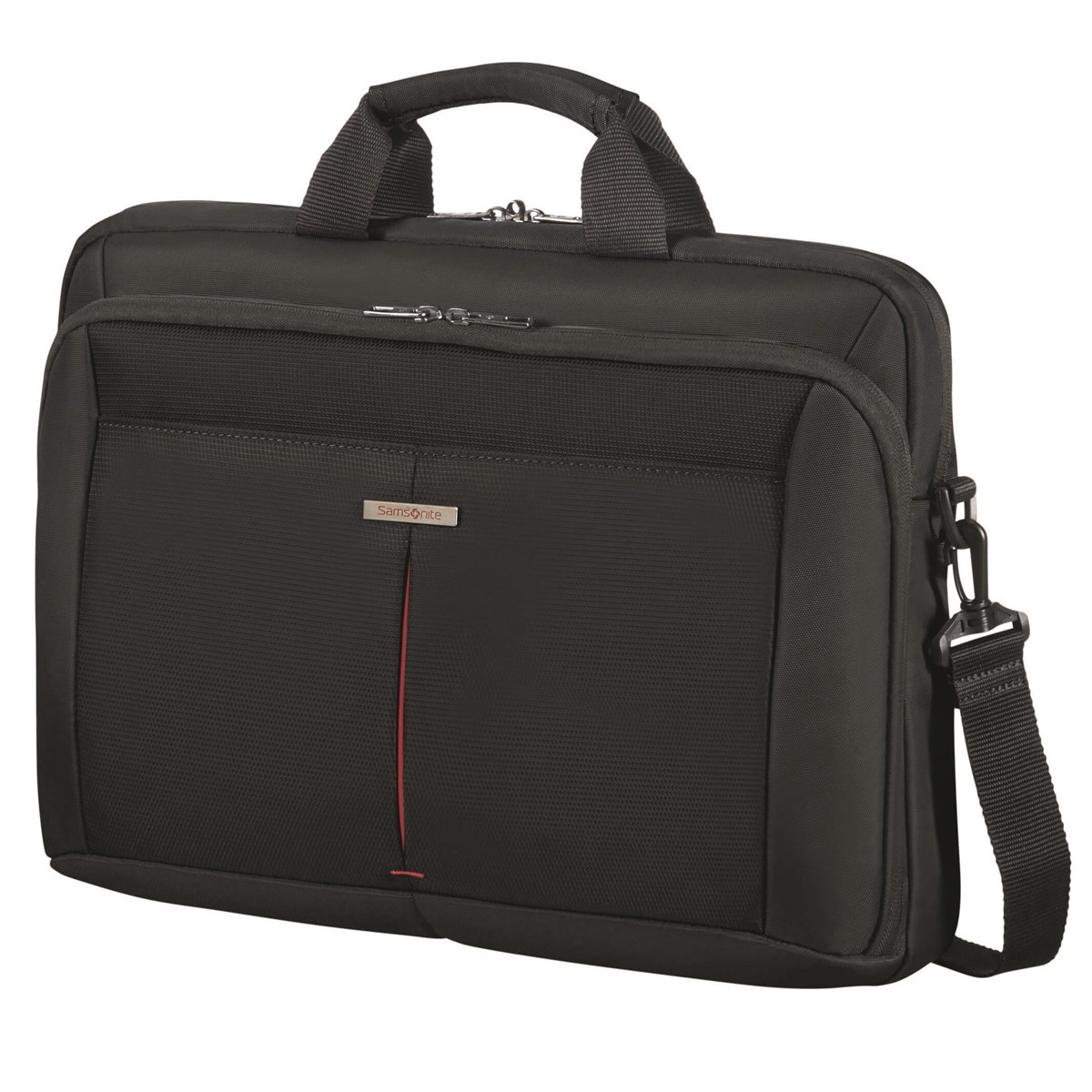 Huvudfack med dragkedja och dedikerade fack för bärbar dator och för surfplatta, och ett fack för dokument. Vadderat handtag och justerbar och avtagbar axelrem. Smart Sleeve™-funktion som gör det möjligt att fästa väskan på ett trolleyhandtag. Svart polyester.
