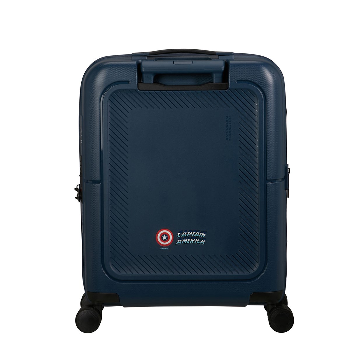 Denna hårda resväska är designad med ett Marvel-tema, med Captain America, och är perfekt för fans som vill resa med stil.