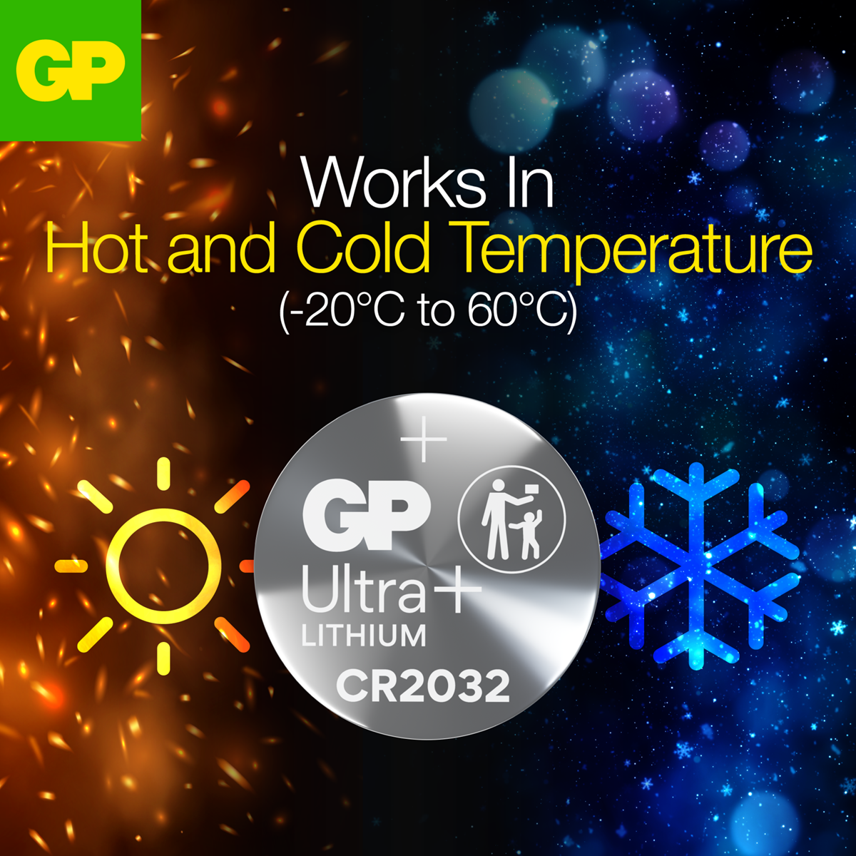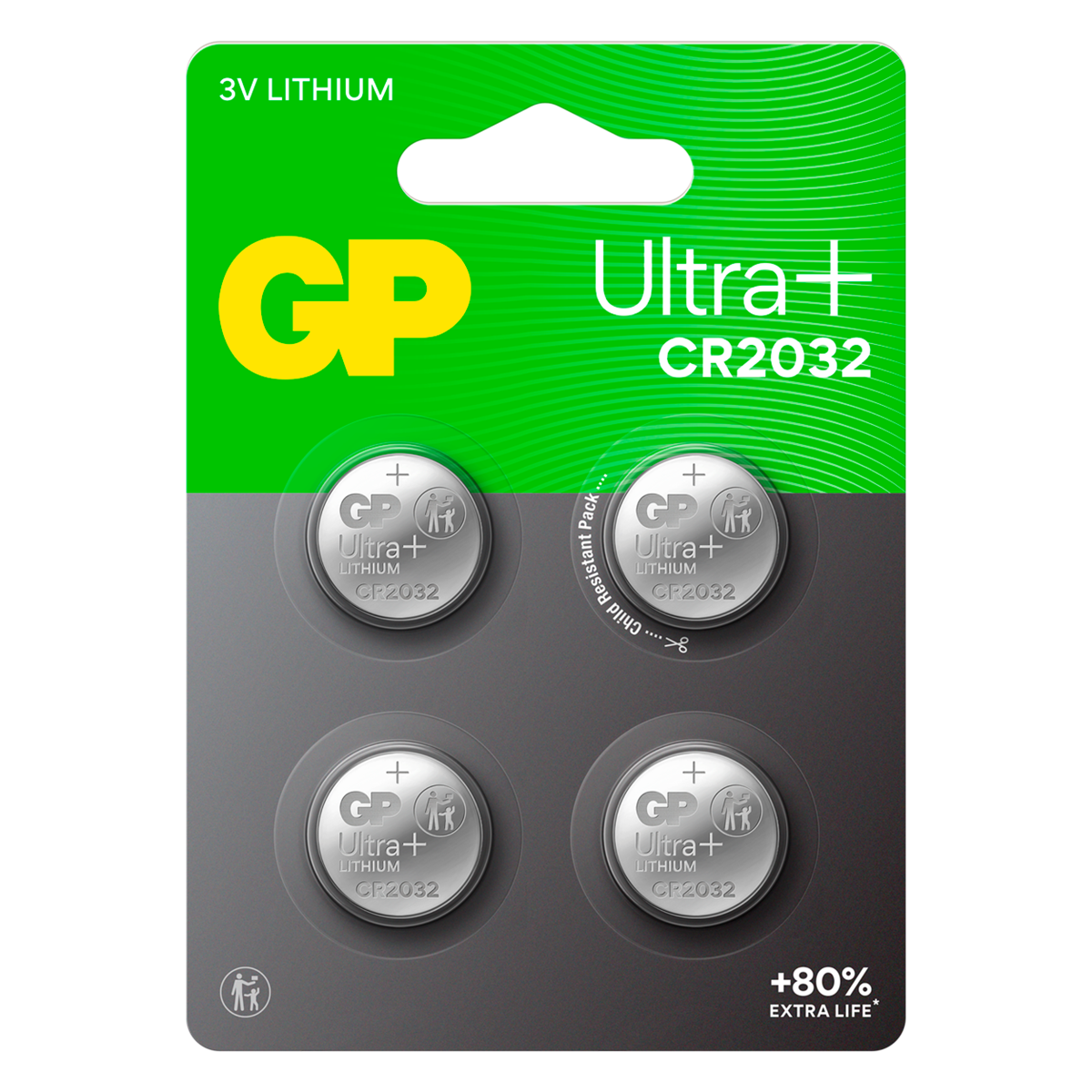 GP Ultra Plus Litium-knappcellsbatterier CR2032 är utrustade med Wavy Net-teknologi som förbättrar kraftstabiliteten och ökar pulsprestandan för längre livslängd – upp till 80 % längre livslängd*. Har upp till 2,5 års drifttid i bilnycklar = färre batteribyten. Avancerad försegling minimerar självurladdning och förhindrar läckage. Byggda för hållbarhet, fungerar i temperaturer från -20°C till +60°C. Den barnsäkra förpackningen ger extra trygghet, speciellt i hemmet.