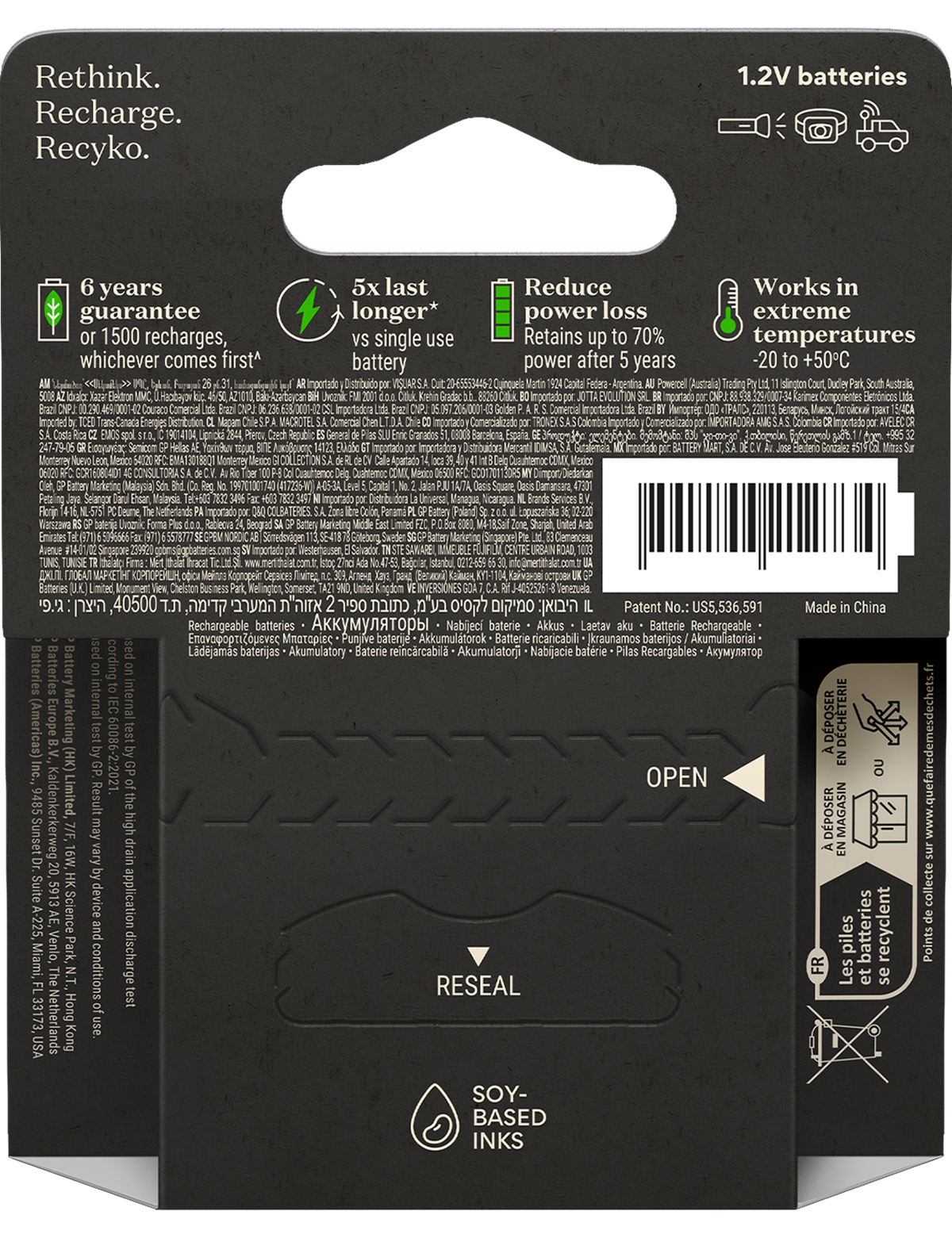 Recyko Pro AA 2100 är ett svanenmärkt laddningsbart batteri med hög prestanda och en massiv livcykel på 1500 gånger, vilket gör det idealt för strömkrävande utrustning. Det har en enorm uthållighet tack vare sin låga självutladdning. Dessutom så fortsätter de leverera hög kapacitet och prestanda under många år och otaliga laddcykler. Med en drifttemperatur från -20°C till +50°C leverar de en pålitlig prestanda även i de mest extrema förhållandena.