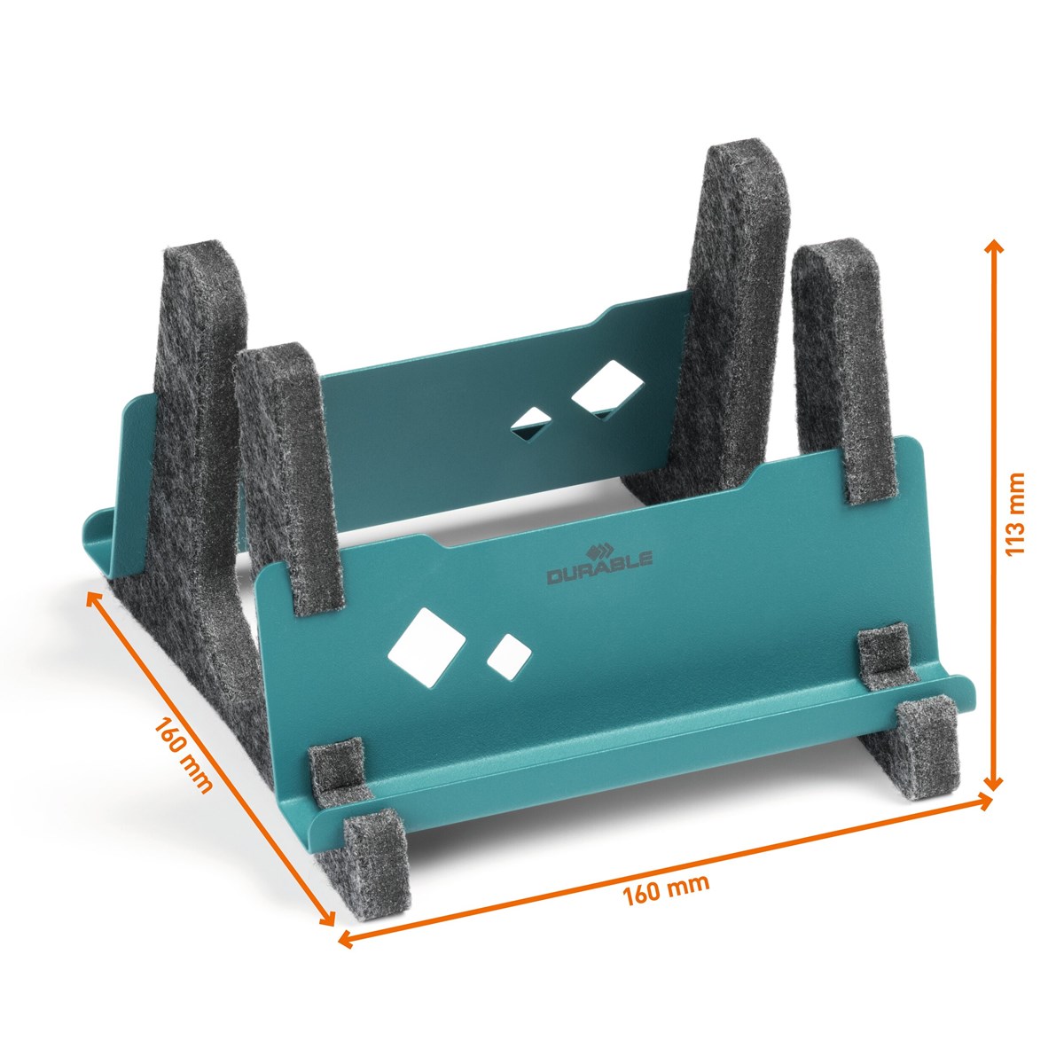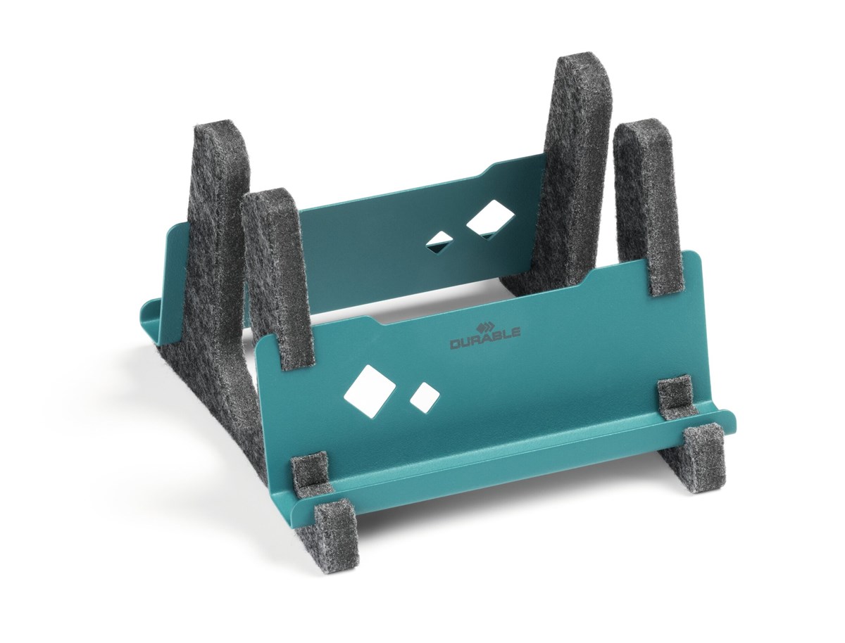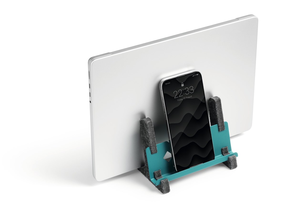 Två hyllister av pulverlackerat stål kan användas för surfplattor, mobiler eller pennor. I stängt skärmläge cirkulerar luften bra, vilket minimerar risk för överhettning. Filten som ingår är ett mjukt, ljuddämpande och tåligt filtmaterial, tillverkat av 60% återvunnen PET.