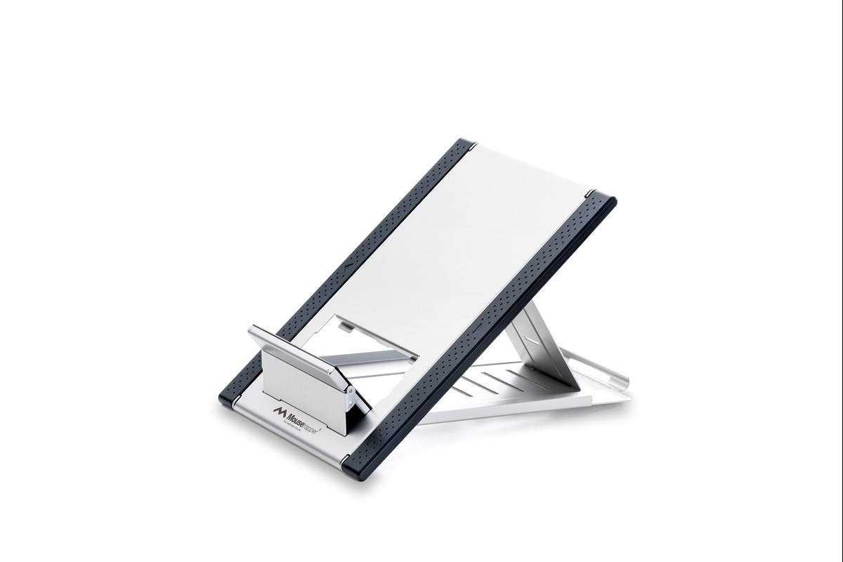 Ställ för bärbar dator och surfplatta hjälper dig att hålla huvudet i en ergonomisk position. Genom att hålla ögonen i rätt höjd på ett bekvämt avstånd från skärmen blir ditt arbete enklare och mer angenämt. Kan ställas in på höjden och bredden. 6 olika vinklar för maximal komfort.