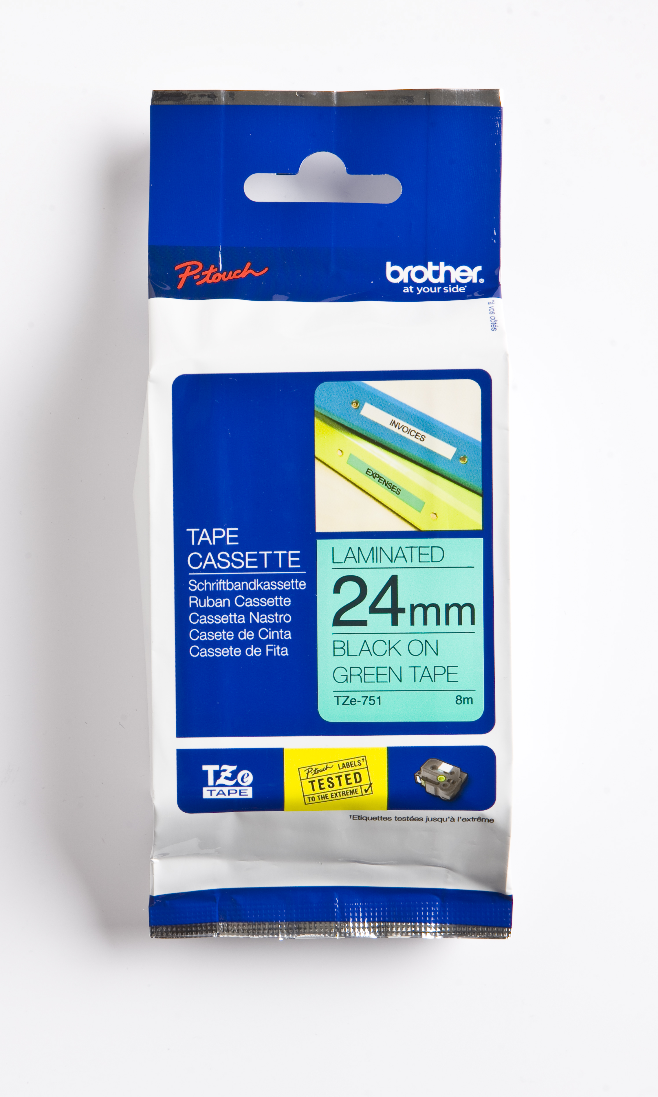 Det inbyggda litiumjonbatteriet som laddas via USB säkerställer att skrivaren är redo att skriva ut en etikett vart och när som helst. För TZe-tejper i storlekarna 3, 5, 6, 9, 12, 18 och 24 mm.