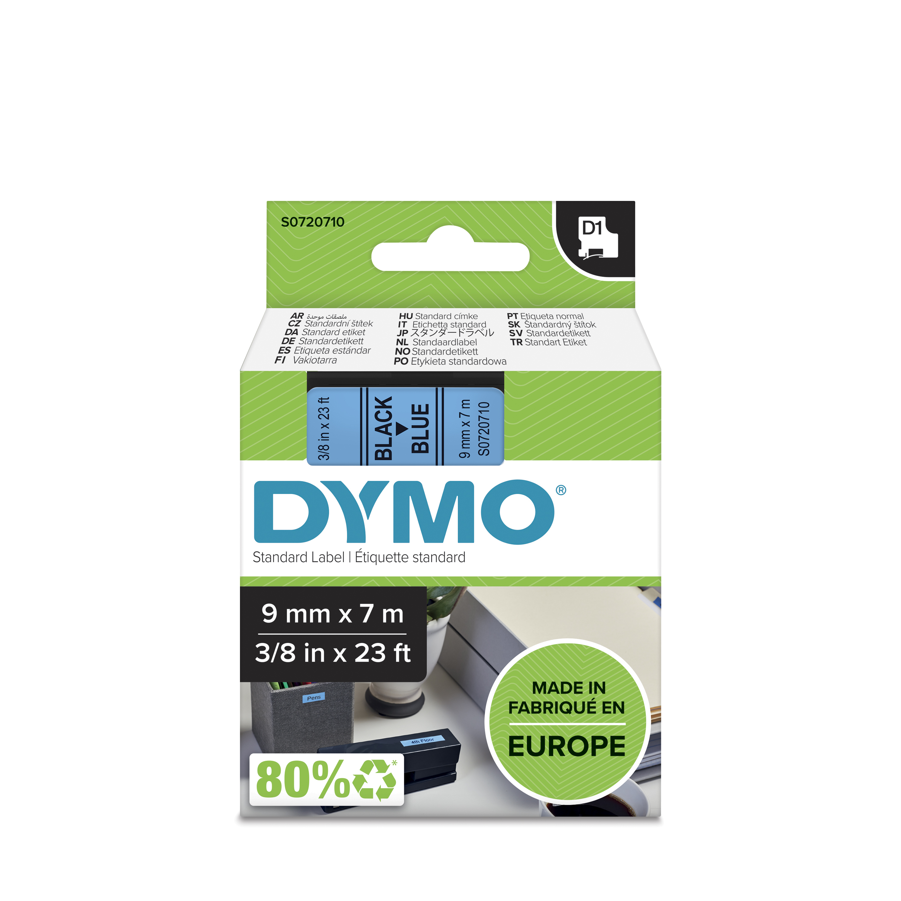 Redigerar med snabbformateringsknappar – fet, kursiv, vertikal, understruken och inramad text Snabb textinmatning med ett vanligt datortangentbord Skriver ut upp till 12 mm breda etiketter Förhandsgranska etiketten på den stora skärmen före utskrift Drivs med 6 st AAA-batterier/adapter (medföljer ej)