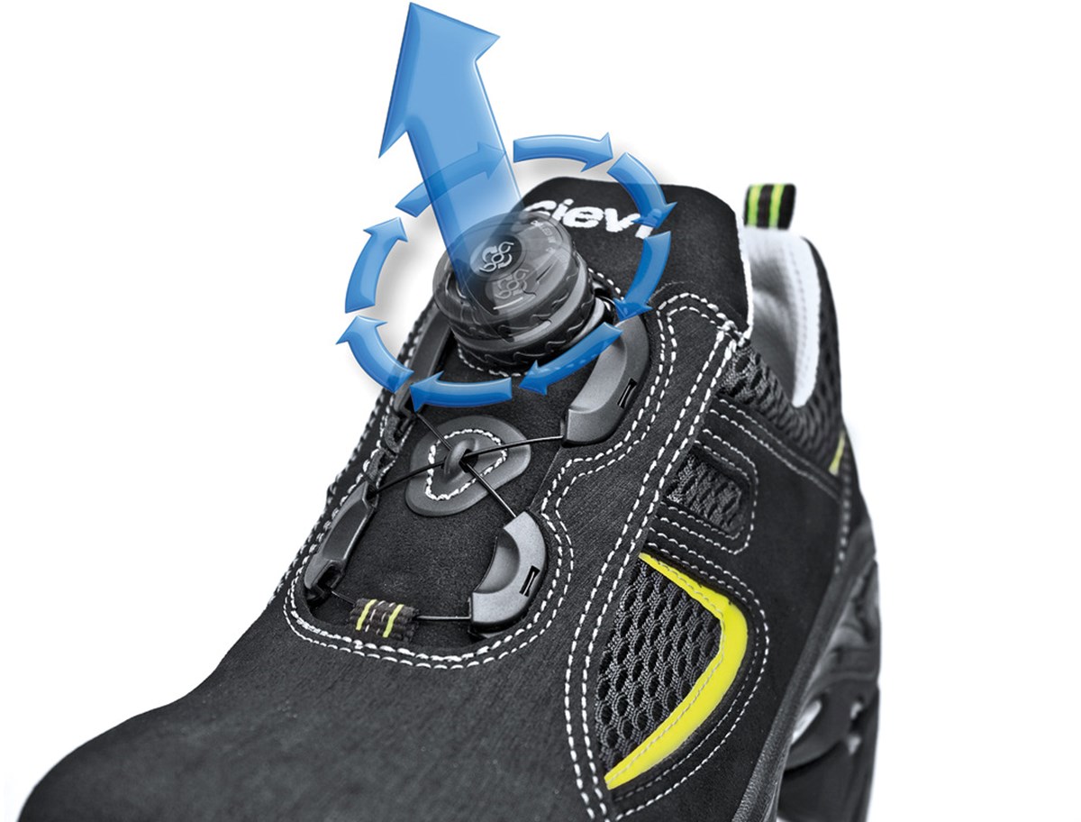 Sievi Roller är försedd med den lättanvända och hållbara, patenterade snörningsmekanismen BOA®. BOA®-mekanismen ger komfort till bärare av skyddsskor: vrid bara på ratten och dina skors passform anpassas till just dina fötter. Skorna är också snabba och enkla att ta av: snörningen frigörs behändigt när ratten lyfts.