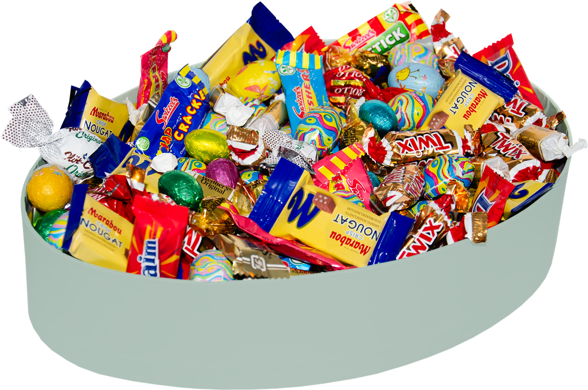 Stor påskgåva fylld med en läcker mix av lösgodis! Det ljusgröna ägget är vackert dekorerat med en stor sidenrosett. Mått: 33x7x24 cm.