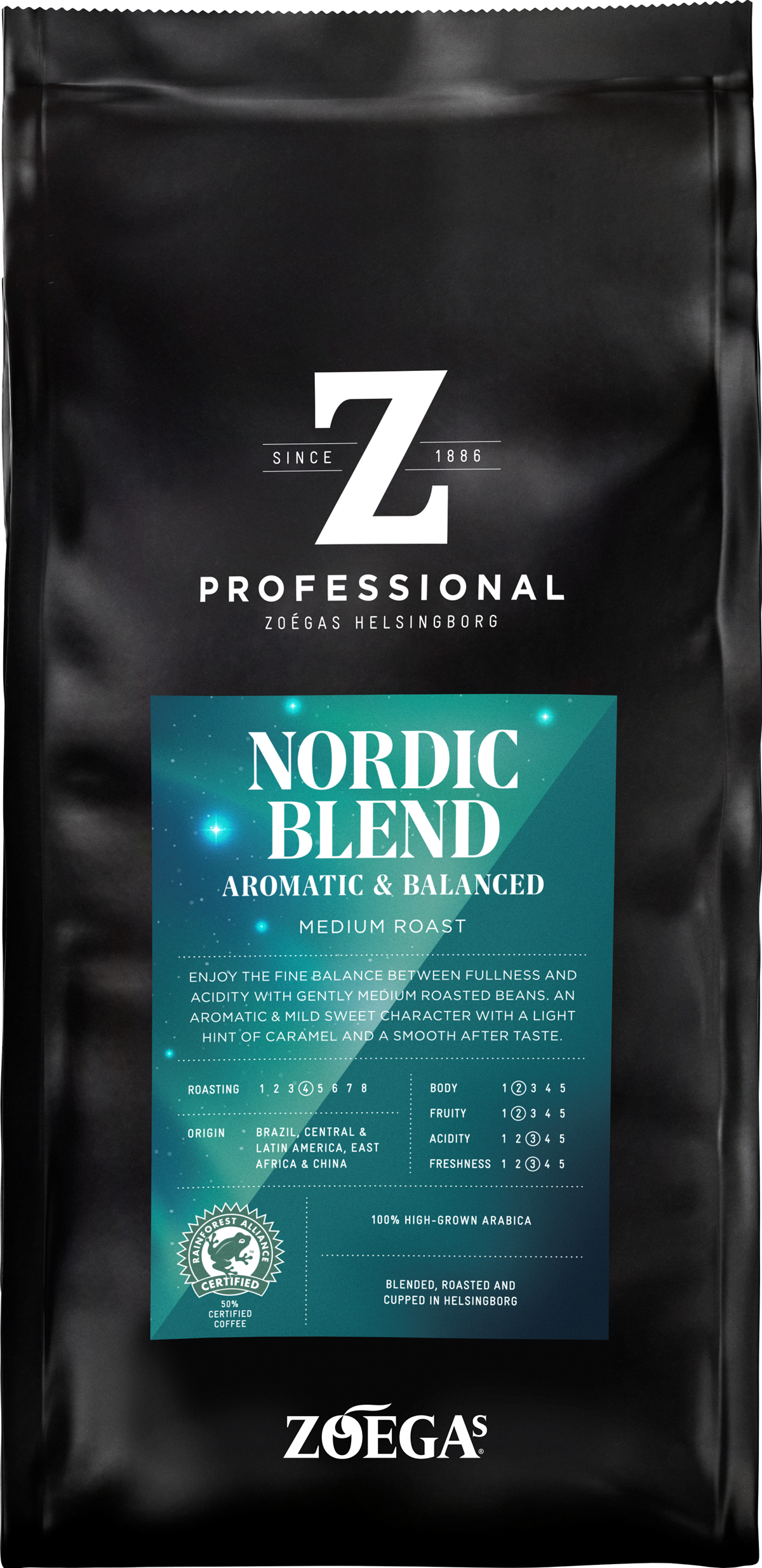 Nordic Blend är skapad för att passa den nordiska smakpreferensen och är optimerad för kaffeservering på café, hotell och restaurang, eller för kaffe på jobbet.