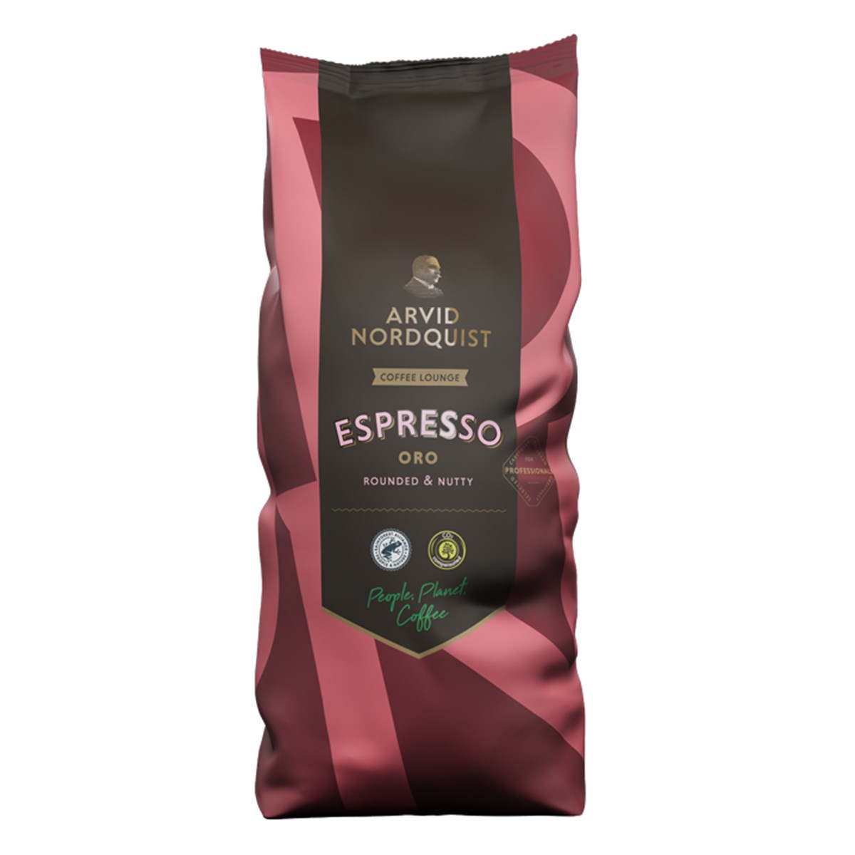 Hela kaffebonor med söt arom av mandel. Fyllig, intensiv smak med en ton av lakrits och bitter choklad. Lång eftersmak. 100% certifierade Arabicabönor från Brasilien, Colombia, Etiopien, Nicaragua. 1000 g.