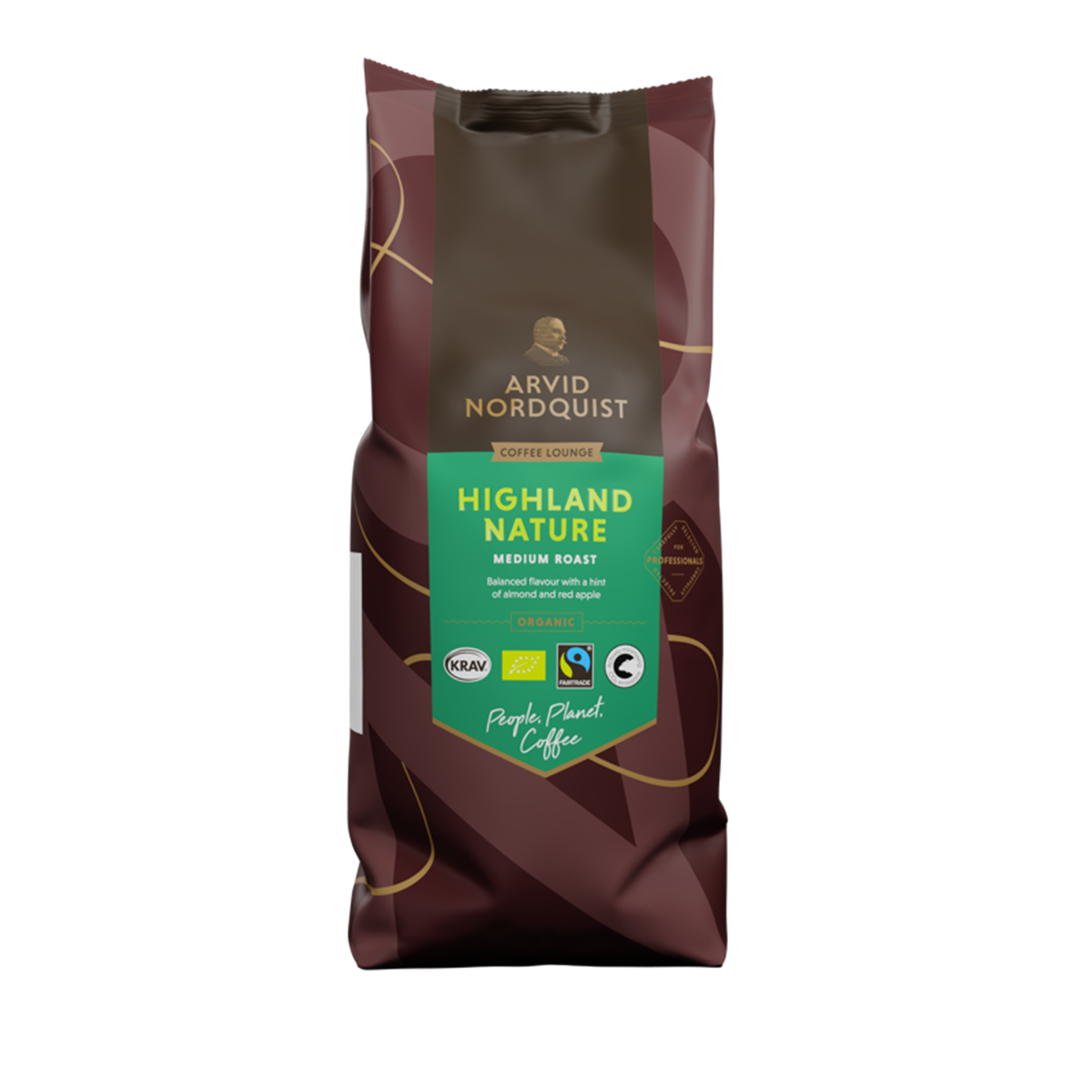 Ett högväxt, ekologiskt och mellanrostat kaffe. De hela bönorna har en rund generös doft med rostad, söt arom av nötnougat och vanilj. Medelfyllig smak med mustig pepprighet. 1000 g.