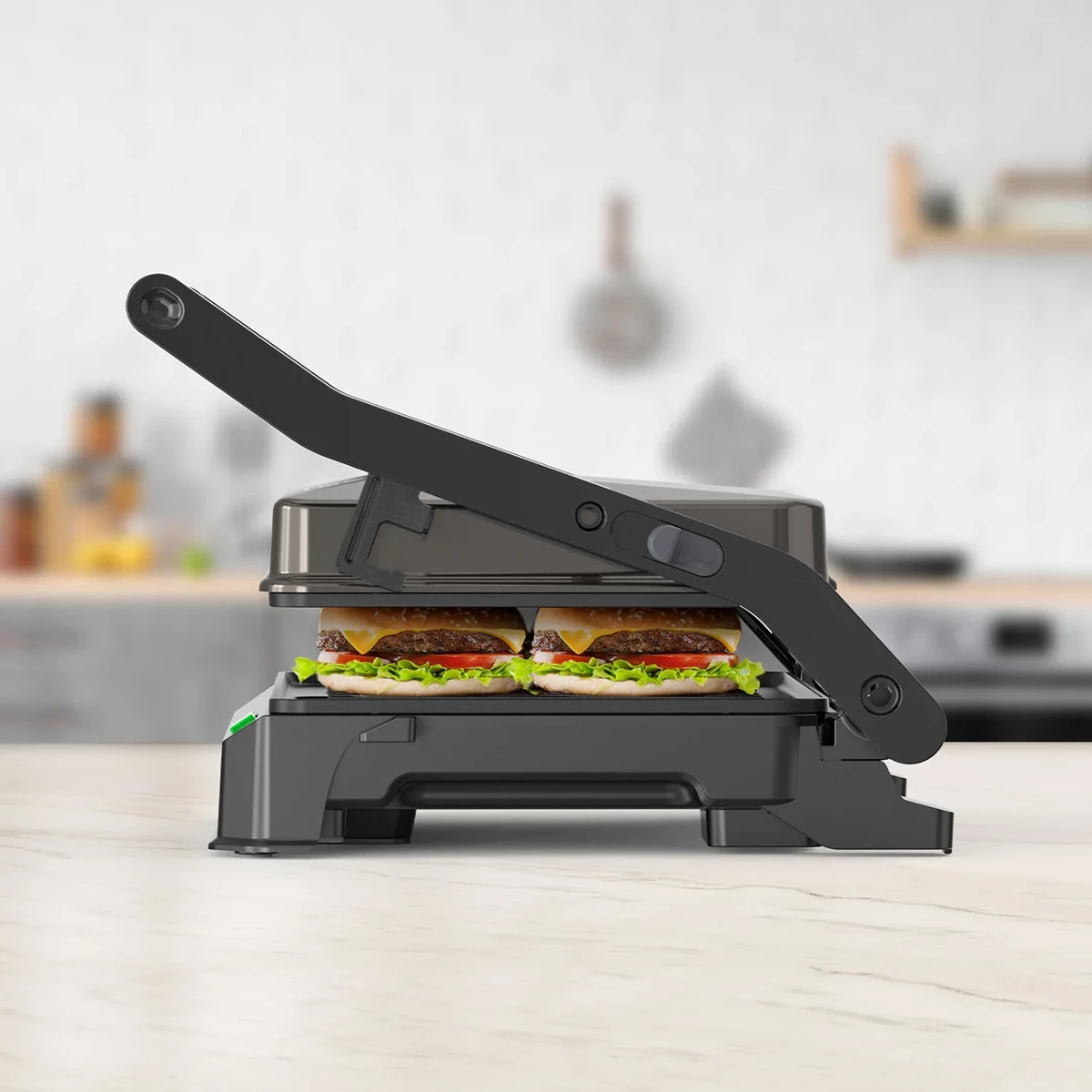 Den här bärbara minigrillen är utformad för att leverera kraftfull matlagningsprestanda med sin uteffekt på 1000W. Den kompakta storleken gör den enkel att transportera och förvara, perfekt för små utrymmen eller grillning på resande fot. Grillen har en 180-graders öppning, vilket ger flexibilitet och bekvämlighet för olika matlagningsbehov. Oavsett om du är hemma eller utomhus är den här grillen en praktisk lösning för snabb och effektiv grillning.