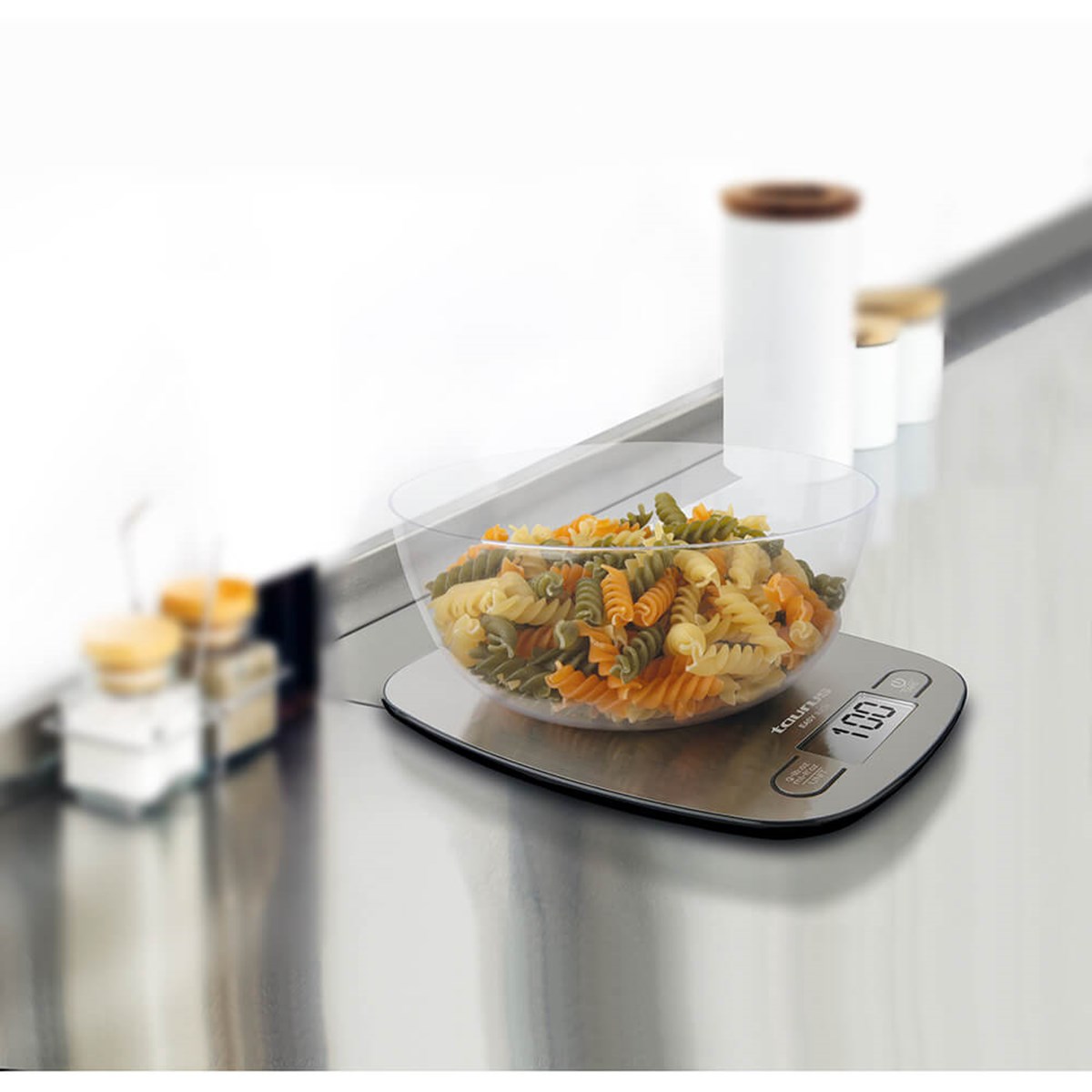 Arbeta i köket precis som en kock med den nya Easy Inox-vågen. Superkompakt och lätt att använda. Dess 1 gram precision gör att du kan använda de exakta mängder du behöver i dina recept. Välj önskat program och väg ingredienserna eller mät volymen vatten och mjölk med total precision.