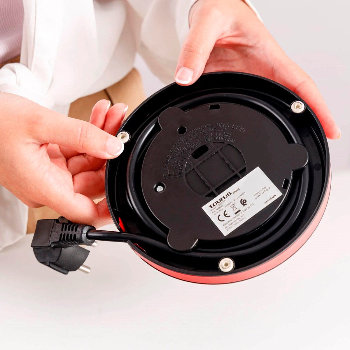 Selene Compact är utrustad med en dold värmeelement, en kabelvinda i basen och en indikatorlampa för på/av. Handtaget är svalt vid beröring för säker hantering, och hela konstruktionen är BPA-fri för din trygghet. Med sin lätta och kompakta design är denna vattenkokare ett utmärkt val för alla kök.