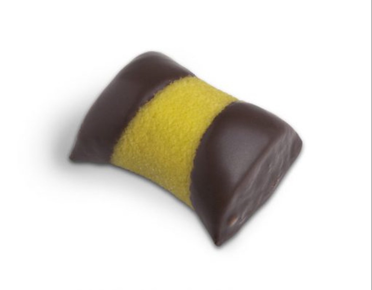Klassiska "dammsugare" med choklad- och arraksfyllning. Överdragen med marsipan och doppad i kakaoglasyr. 31% mandelmarsipan.