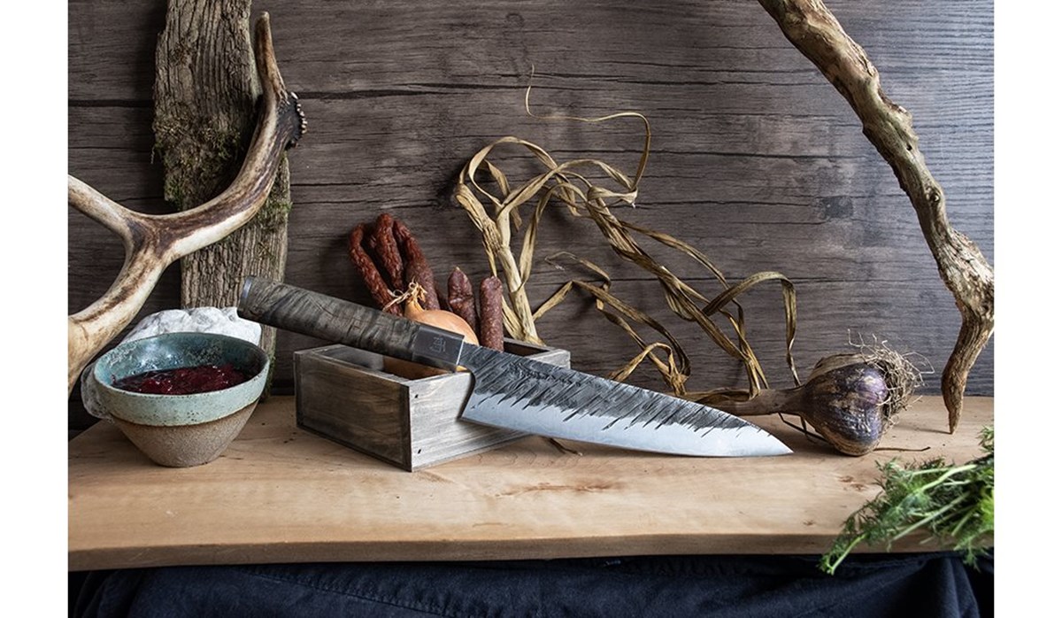 - Handbankat blad av 5 lager AUS10-stål - Bladets hårdhet ligger på 60-61 HRC - Bolster & ändstycke i rostfritt stål