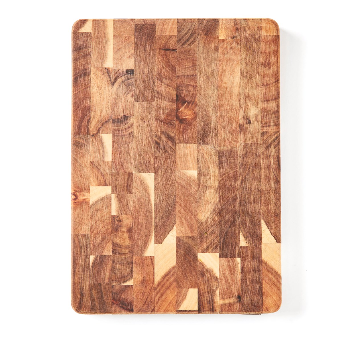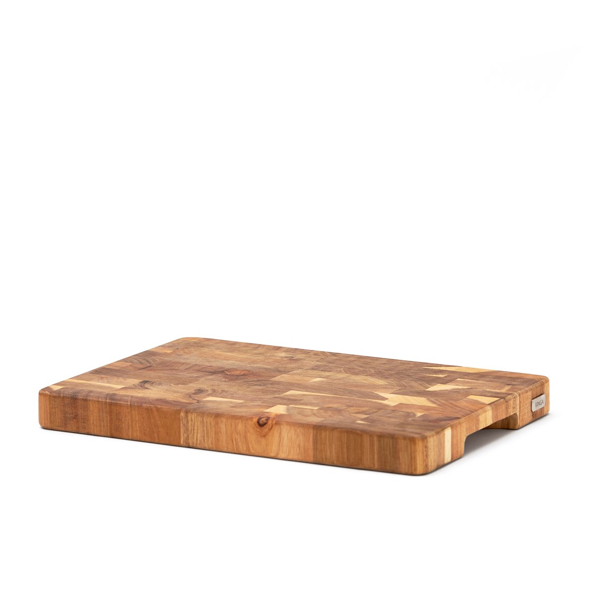 Skärbräda i vackert FSC-märkt akaciaträ. Mycket fin att servera på. Tack vare akaciaträdets ådring blir varje skärbräda således unik. Fåror på kortsidorna för bättre greppvänlighet. Tillverkad av ändträ som limmas och paras ihop på ett sätt som gör att brädan inte slår sig efter en tid. Presentkartong. Mått: 34 x 24 x 3 cm.