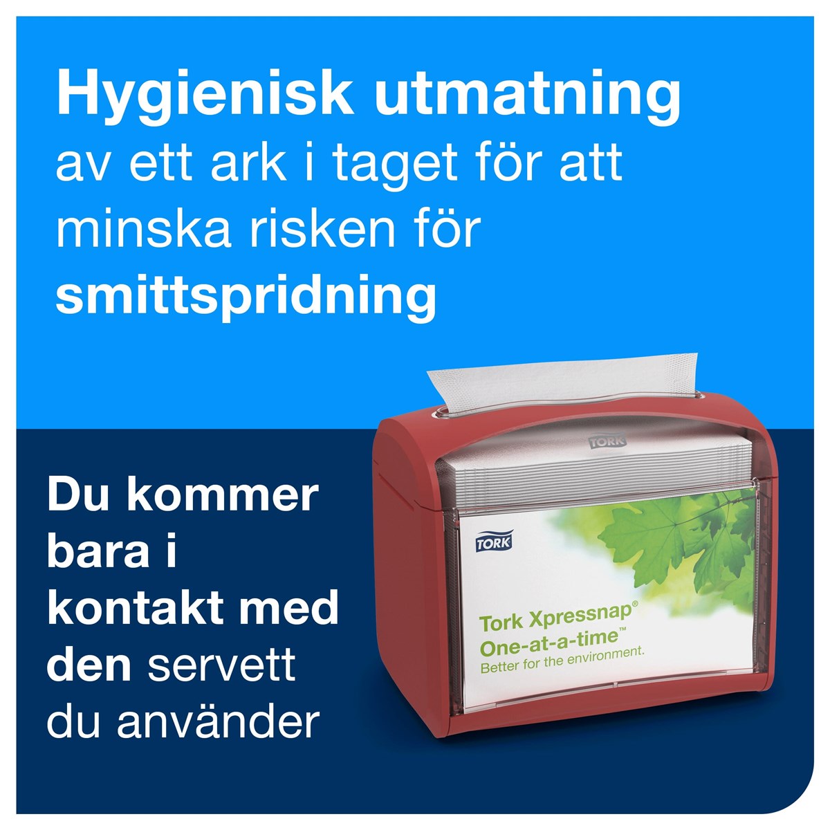 Kompakt och modern design Hållbara och lättskötta material för mindre underhåll Anpassningsbart informationsfönster för reklam eller instruktioner till personal Utmatning av ett ark i taget, förbättrar hygienen och minskar förbrukningen Brett urval av färger
