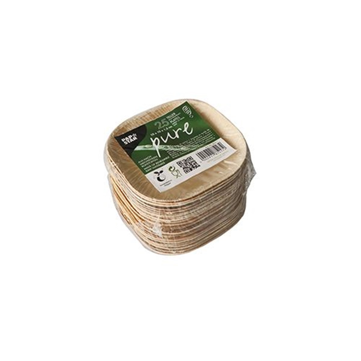 Tallrik tillverkad av fallna palmblad från den indiska Betelpalmen. När palmbladen fallit till marken så samlas de in, tvättas och torkas under solen. Sedan pressas de till önskad form och storlek i en unik värmeprocess.