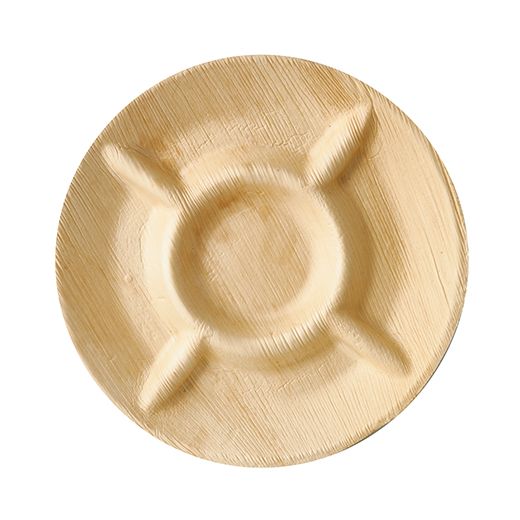 Tallrik tillverkad av fallna palmblad från den indiska Betel palmen. När palmbladen fallit till marken så samlas de in, tvättas och torkas under solen. Sedan pressas de till önskad form och storlek i en unik värmeprocess.