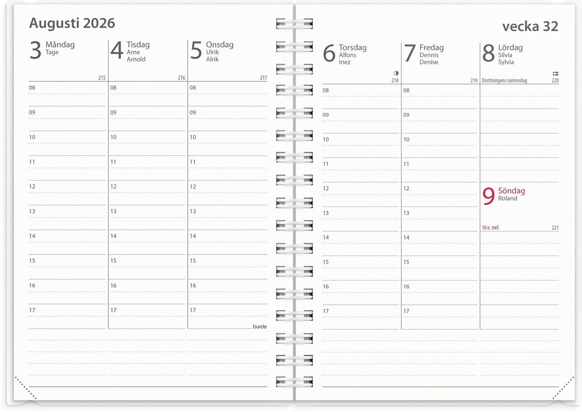 Format: A6. Layout: Stående. Vecka/uppslag. Timindelning 8-17. Kalendarium: 2025-06-16 - 2026-08-16. Omslag: PP-plast. Spiralbunden. Detaljer: Gummiband. Innehåll: Årsplaner, schema, provresultat. Antal sidor: 176. Miljöinformation: FSC®.