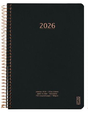 Kalender 2026 KOZO A5 Vecka per uppslag Black