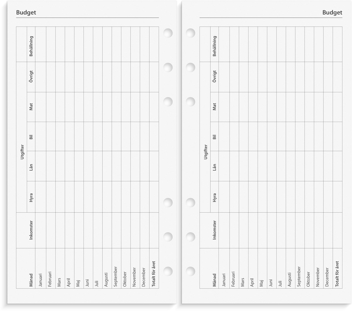 Grundsats till systemkalender Regent. Kalenderdelen innehåller hålad kalenderdel (4601) och blankettdel.