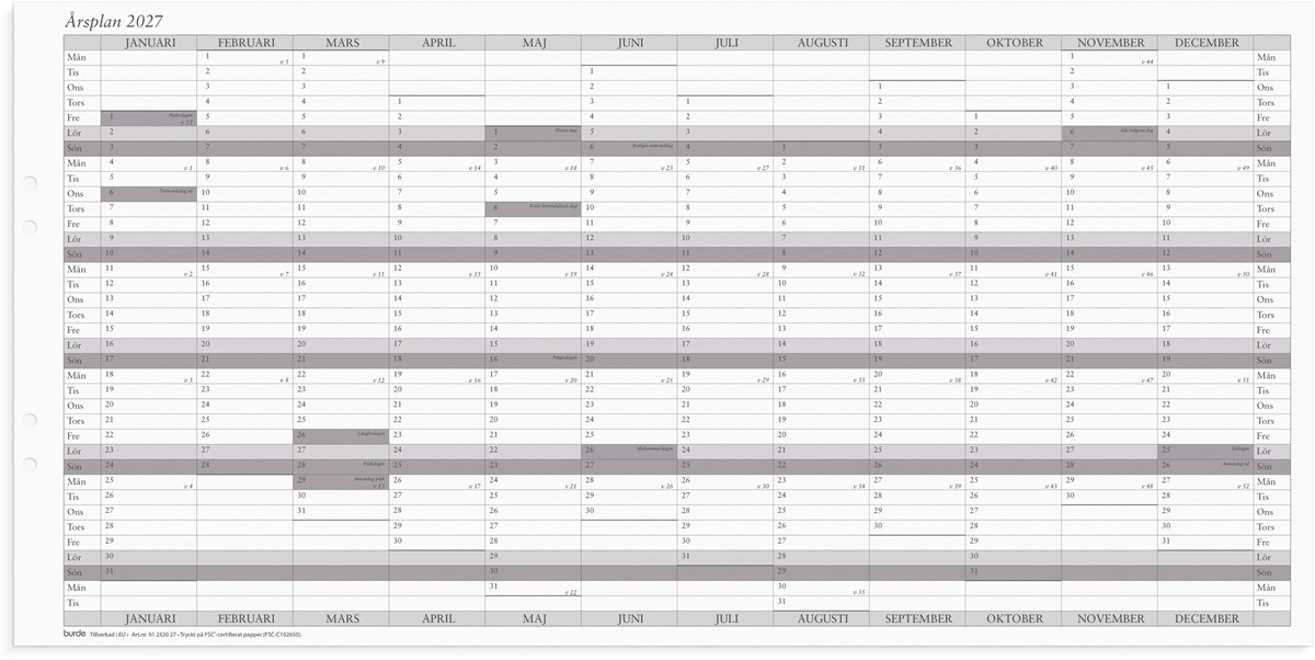 Väggkalender 2027 Årsplan 5/fp