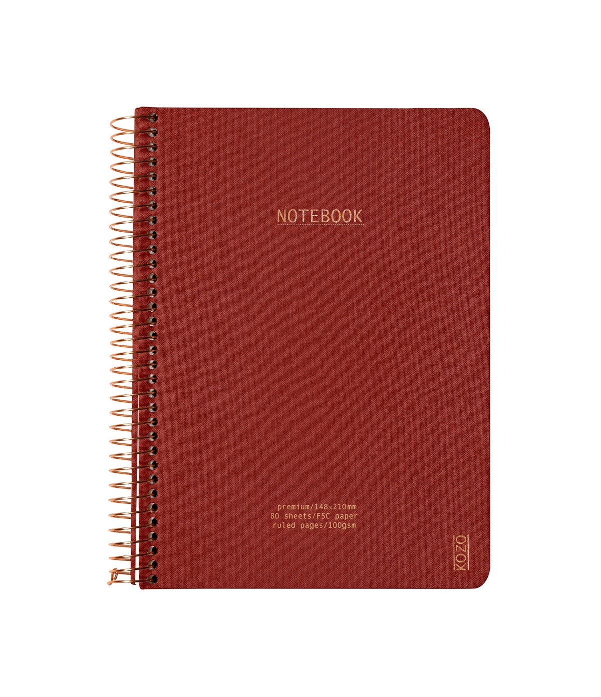 KOZO Premium anteckningsbok är definitivt en av de snyggaste anteckningsböckerna på marknaden. Det kraftiga canvasomslaget med vackra detaljer i brons och den kaxigt stora spiralen även den i brons. Gör den perfekt att skriva och ta anteckningar i både när du har den liggandes i knät eller till och med stående utan stöd. Givetvis är den en vacker inredningsdetalj till ditt skrivbord.