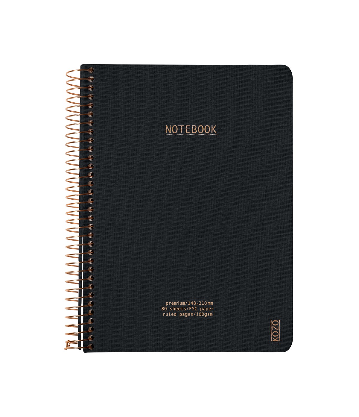 KOZO Premium anteckningsbok är definitivt en av de snyggaste anteckningsböckerna på marknaden. Det kraftiga canvasomslaget med vackra detaljer i brons och den kaxigt stora spiralen även den i brons. Gör den perfekt att skriva och ta anteckningar i både när du har den liggandes i knät eller till och med stående utan stöd. Givetvis är den en vacker inredningsdetalj till ditt skrivbord.