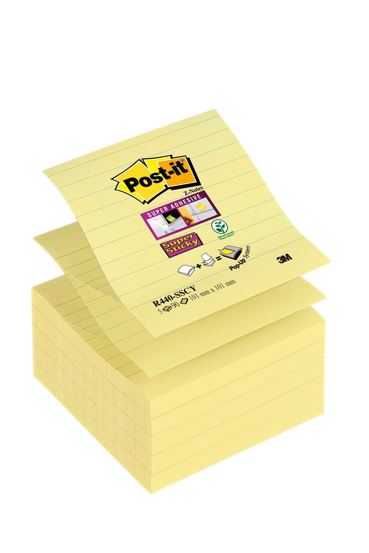 Påfyllnad för z-blockshållare. Vartannat blad limmat i överkant, vartannat i underkant. Ta ett blad och nästa kommer upp automatiskt – redo att användas. Extra starkt häftämne vilket gör att de sitter säkert på de flesta ytor, även vertikalt. Linjerade. Format: 101 x 101 mm. 90 blad/block. 5 block/förp.