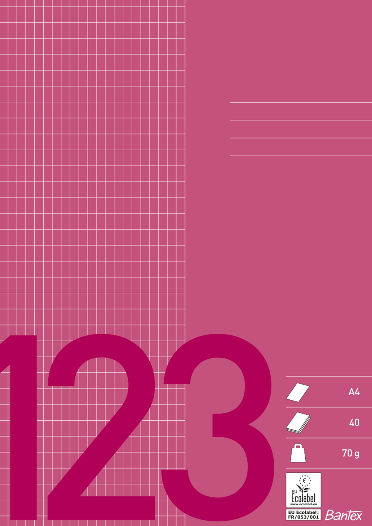 Skolhäfte i 70 g papper. A4-format. Linjeringsdetaljer: rutor 5 x 9 mm. 40 blad.