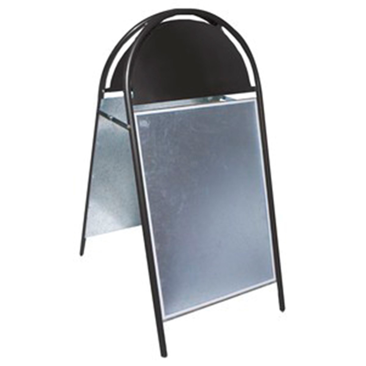 Ett snyggt och stabilt gatuställ som passar både inomhus och utomhus. Gatuställ i format 50x70 cm med plats för din företagslogo. 25 mm svartfärgade stålrör som är fosfat och polyesterlackerade samt aluminiumförzinkad skyltplatta. Levereras med magnetförsedd frontplast av PET.