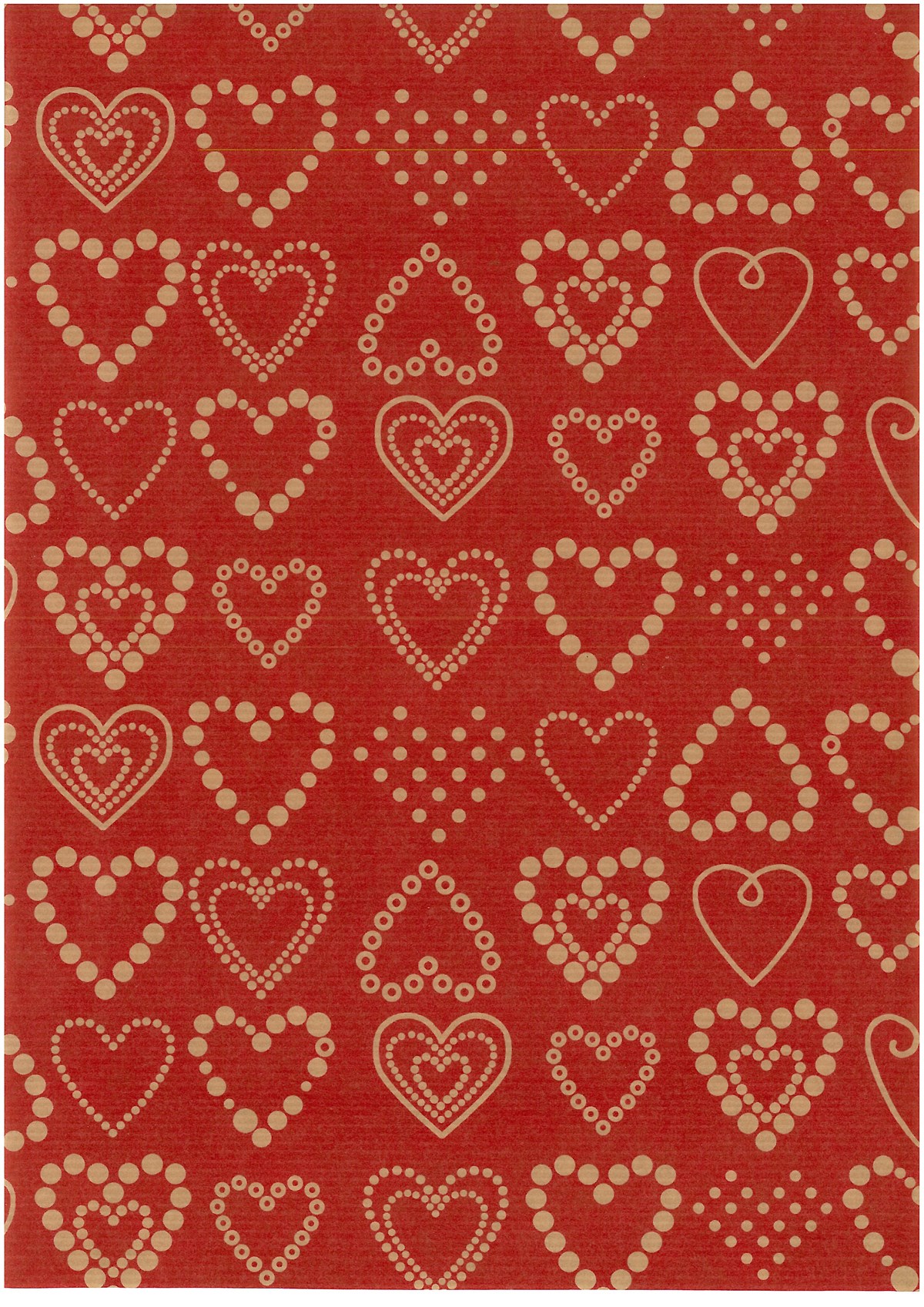 Julpapper Diskrulle Dotted Hearts röd 0,57x154 m