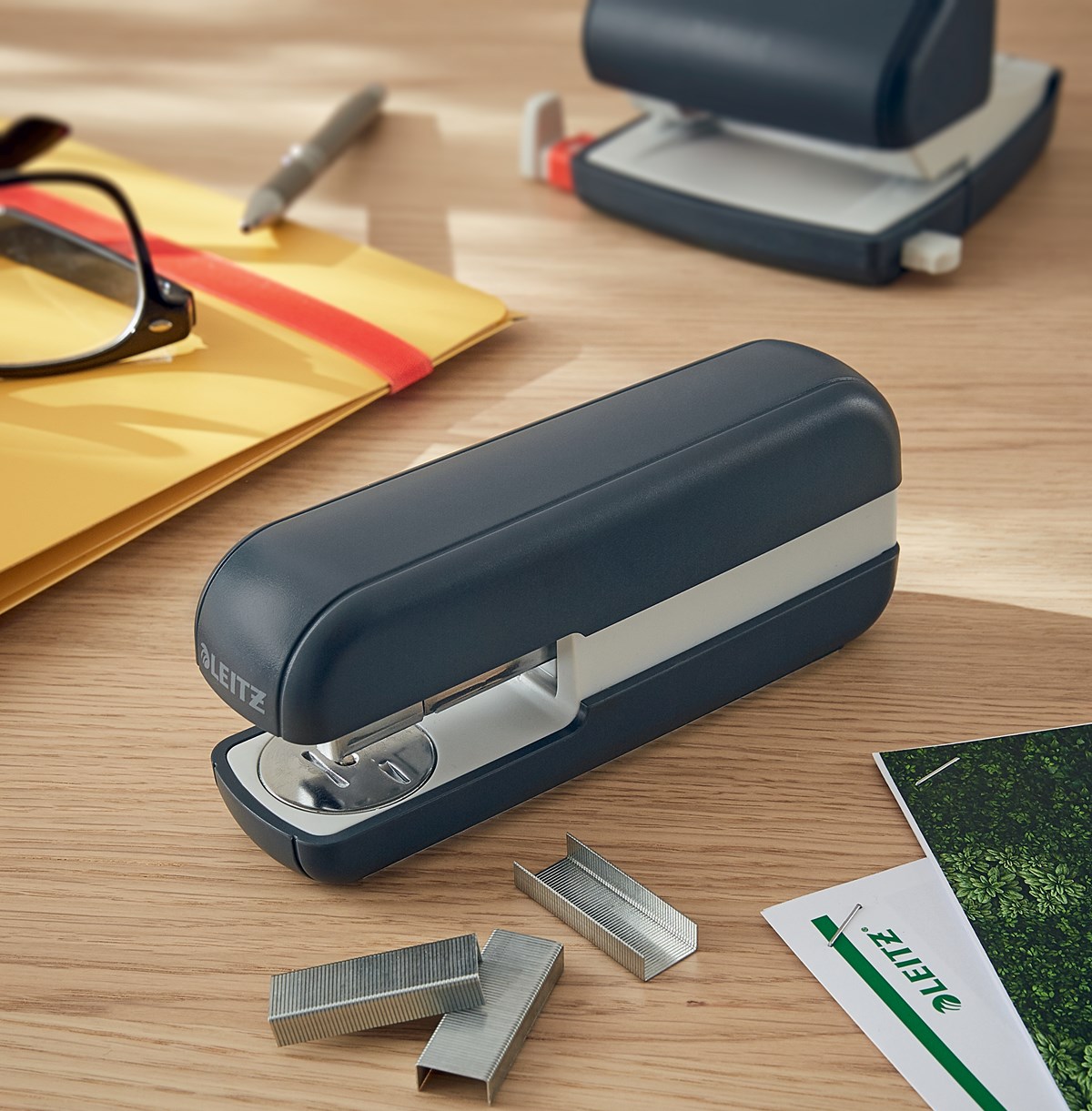 Stark och hållbar häftapparat för häftning av upp till 30 pappersark Patenterad Direct Impact-teknik garanterar enkel och noggrann häftning varje gång Växla städet mellan öppen och stängd häftning med hjälp av tryckfunktionen Kompatibel med Leitz Power Performance P3 (24/6 och 26/6) häftklamrar 10 års garanti vid användning av Leitz häftklamrar