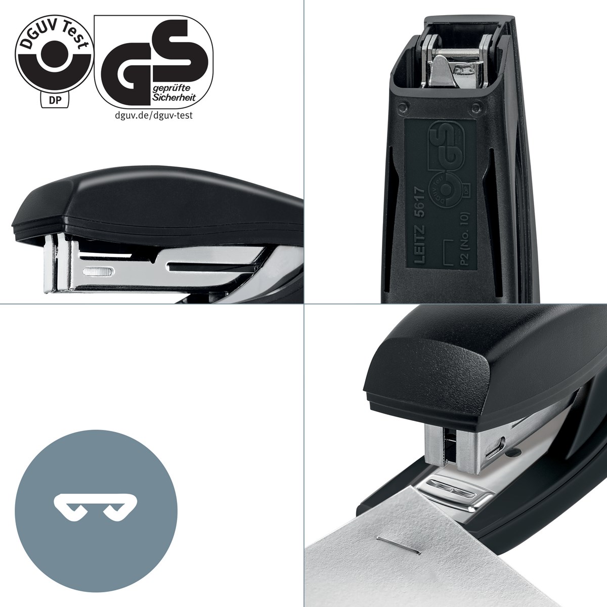 Enkel, exakt häftning med patenterad Direct Impact-teknologi Praktisk integrerad klammerborttagare 180°-öppning möjliggör spikfunktion Kompakt storlek, perfekt att använda på resande fot 100% återvinningsbar